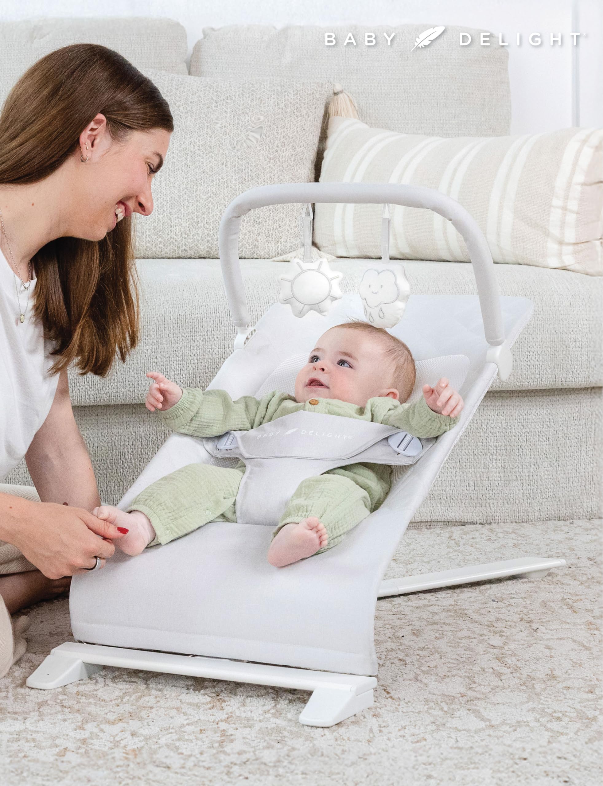 Introducing the Baby Delight Alpine Bouncer, your ultimate parenting sidekick! This versatile bouncer is designed to make your life easier with its cozy seat, gentle bouncing motion, and compact portability. Crafted with your baby's comfort in mind, it features a supportive seat that keeps them snug and secure during play or mealtime. The adjustable harness ensures safety, while the removable toy bar keeps your little one entertained with adorable plush toys. Whether you're at home or on the go, the Baby Delight Alpine Bouncer is your ticket to peace of mind and happy moments with your bundle of joy!