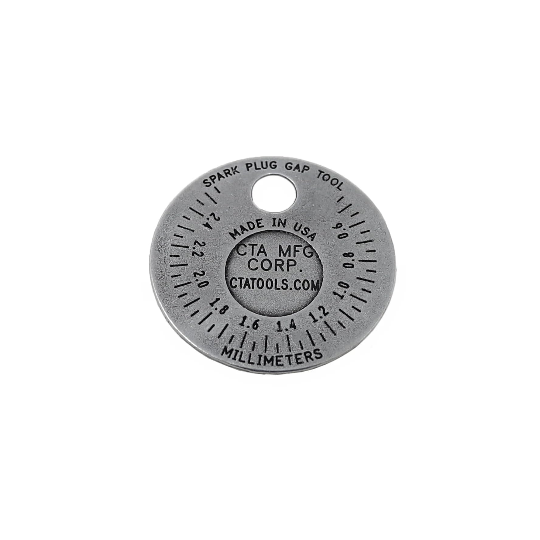 The CTA Tools 3235 Spark Plug Gapper is a compact, coin-style tool designed for quick and convenient spark plug gap checks during routine maintenance and tune-ups. With an easy-to-read scale and simple ramp-style design, it allows users to quickly verify spark plug gaps without complicated setup or additional tools. This gapper measures gap sizes from 0.020" to 0.100", covering most automotive, powersports, and small-engine applications. Constructed from durable, corrosion-resistant plated steel, it is built to withstand repeated use while maintaining reliable performance over time. Its slim, lightweight design fits easily in a pocket or toolbox, making it ideal for use in the shop, garage, or on the go. The CTA Tools 3235 is intended for general service and quick-reference use, helping ensure proper ignition performance and smoother engine operation during everyday maintenance. It provides approximate gap verification within normal service tolerances and is well-suited for fast inspections and adjustments. Important Usage Note: This spark plug gapper is a quick-check reference tool and is not designed for calibration-grade precision. Minor measurement variances are normal and acceptable for general service. For applications requiring exact gap measurements to the thousandth of an inch (such as 0.028" or 0.71 mm), a precision feeler gauge should be used for final verification. Whether you’re performing routine maintenance, diagnosing ignition issues, or making quick checks between runs, the CTA Tools 3235 Spark Plug Gapper delivers reliable, fast, and convenient results you can count on.