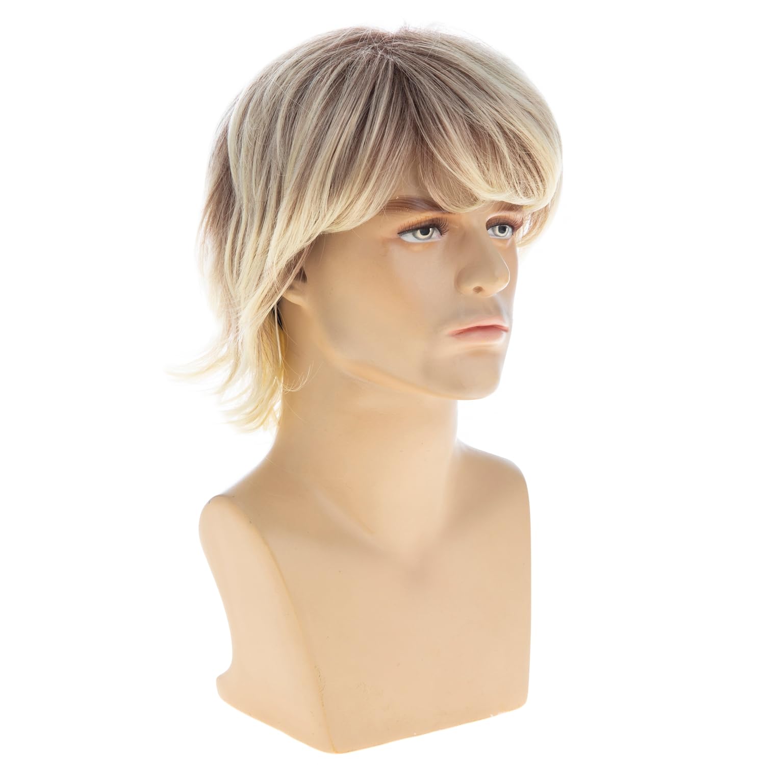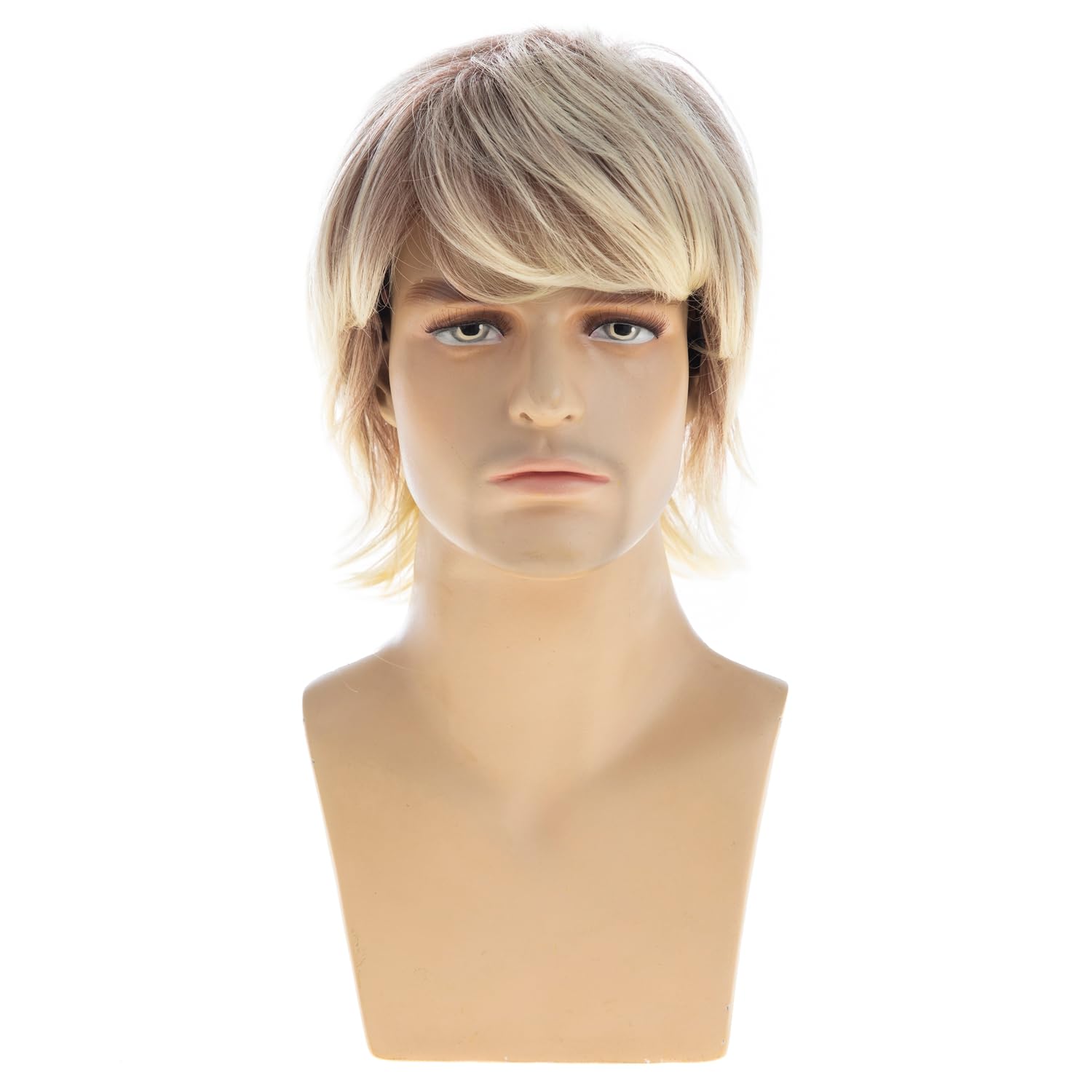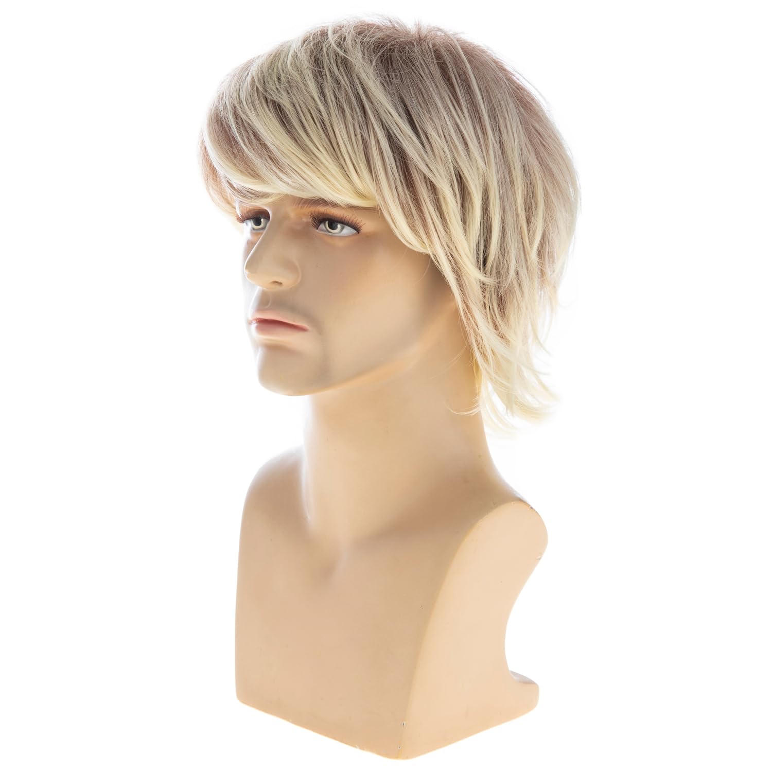 Material:Short mens blonde wig crafted from premium synthetic fibers, smooth and glossy, with natural-looking wavy textures. Comfortable and breathable to wear, it effortlessly creates a natural and handsome hairstyle for men.