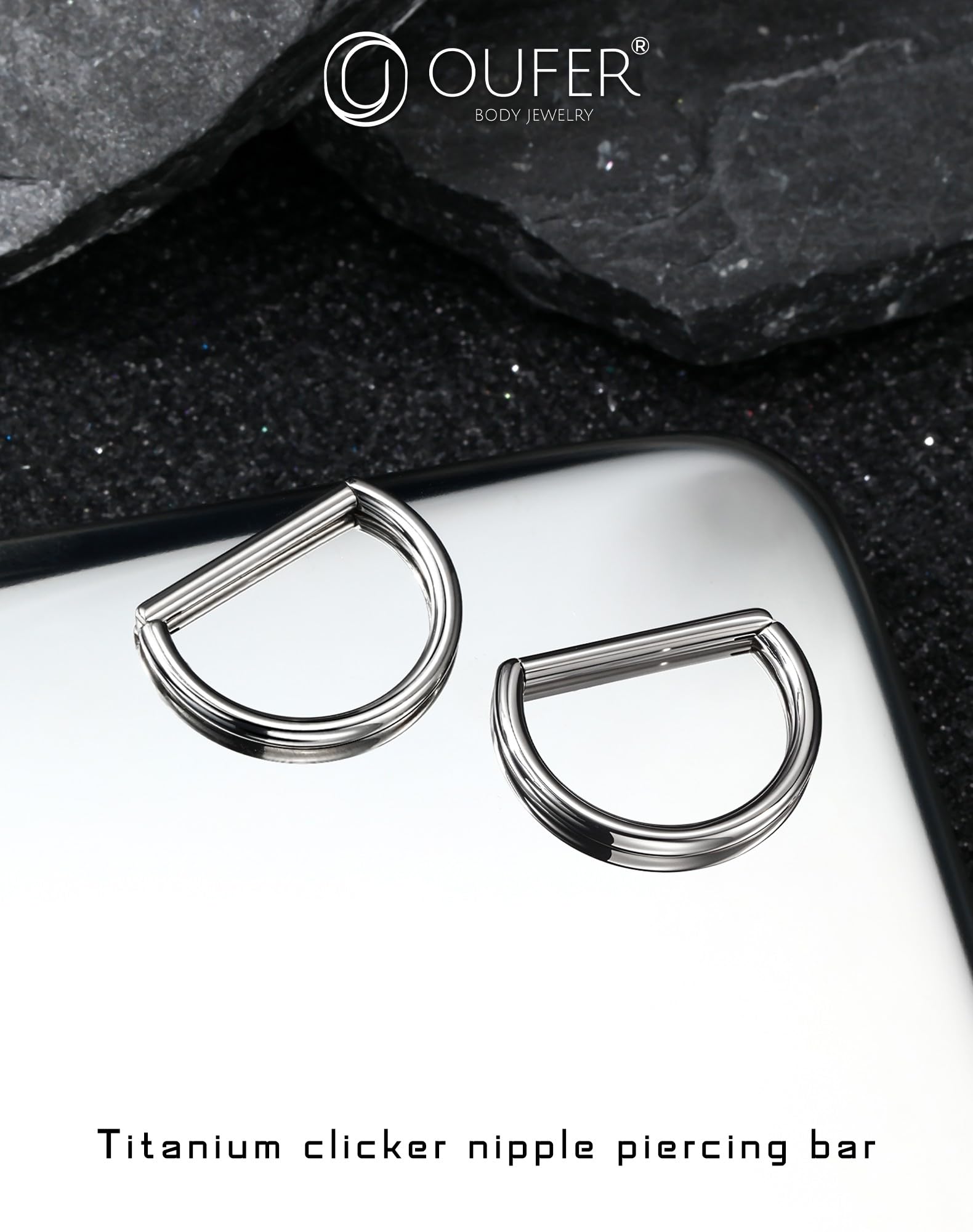 UNIQUE DESIGN: 2PCS G23 titanium nipple piercing jewelry with D-shaped design, D-shaped seamless ring design allows for easy insertion and removal while maintaining a secure fit