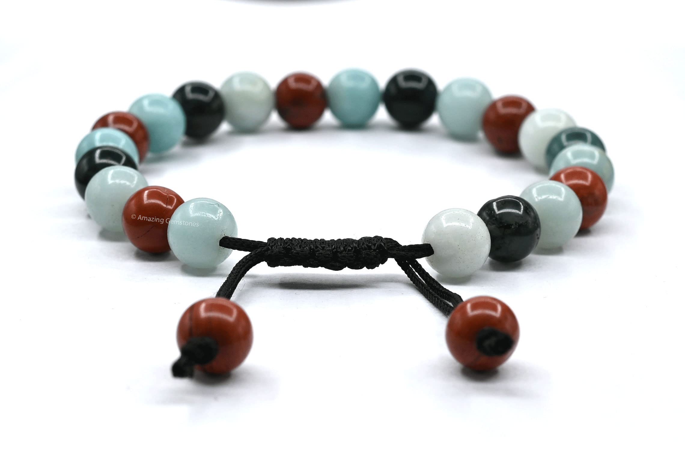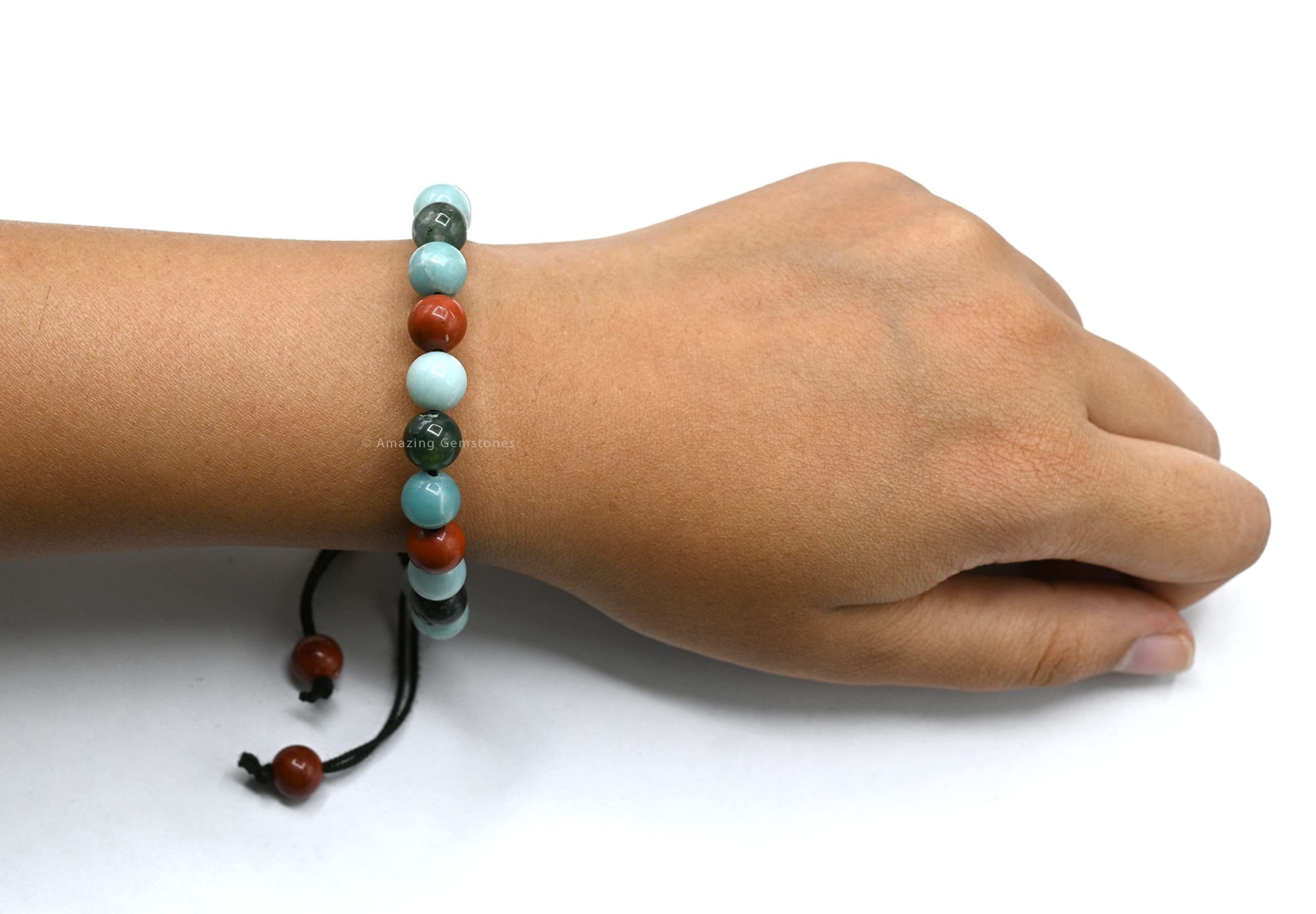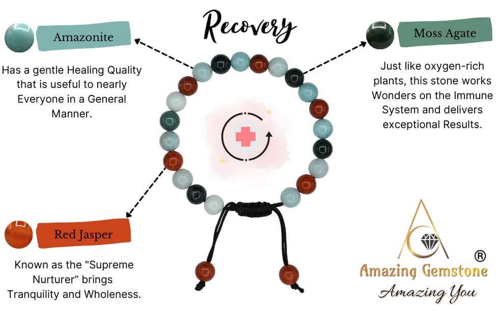 Bracelet for Recovery contains real crystal beads Moss Agate, Amazonite and Red Jasper. Moss Agate for Immunity, Amazonite for Healing & Red Jasper for Tranquility Pulseras Para Hombres Mujer Stocking Stuffers.