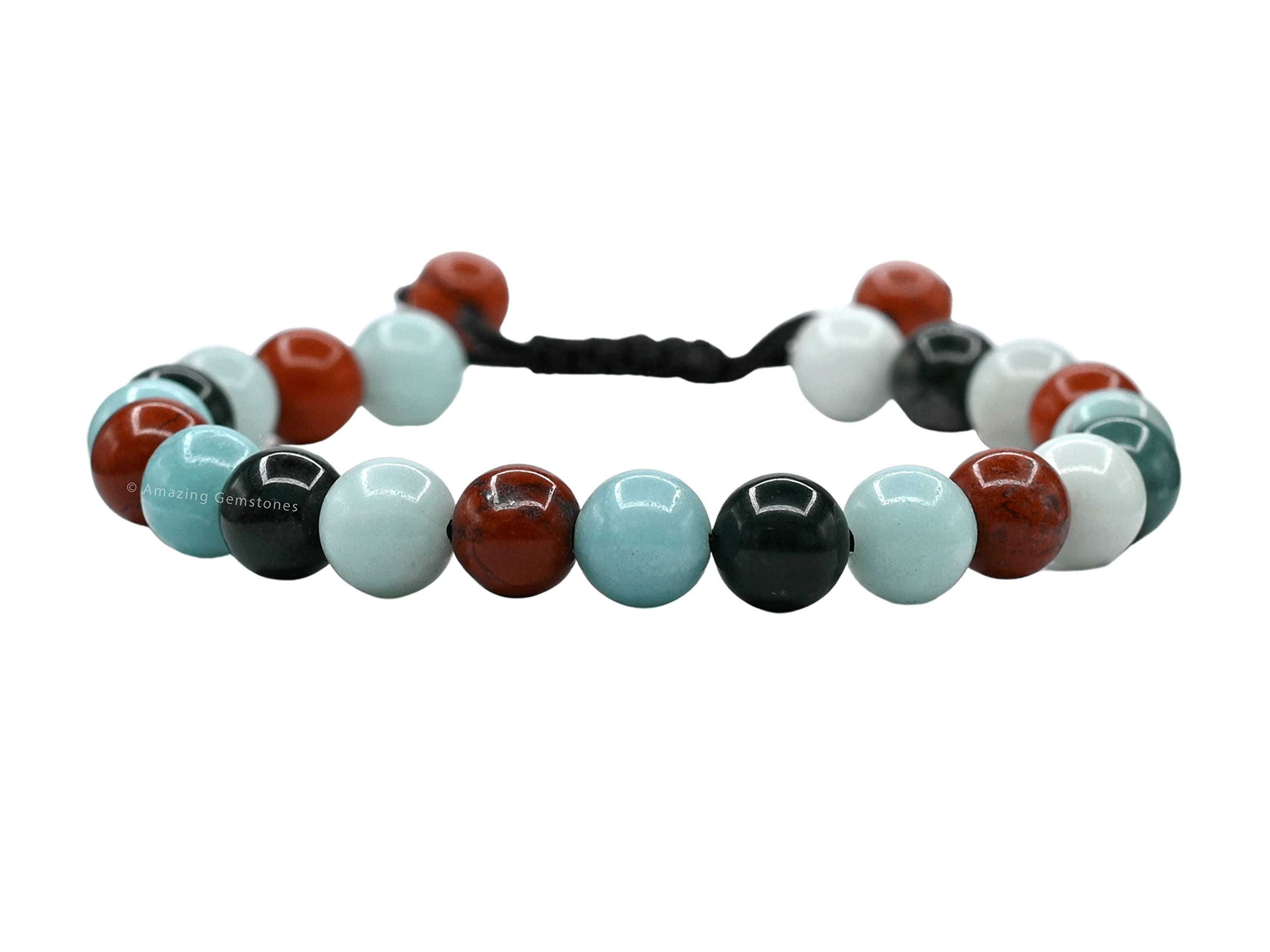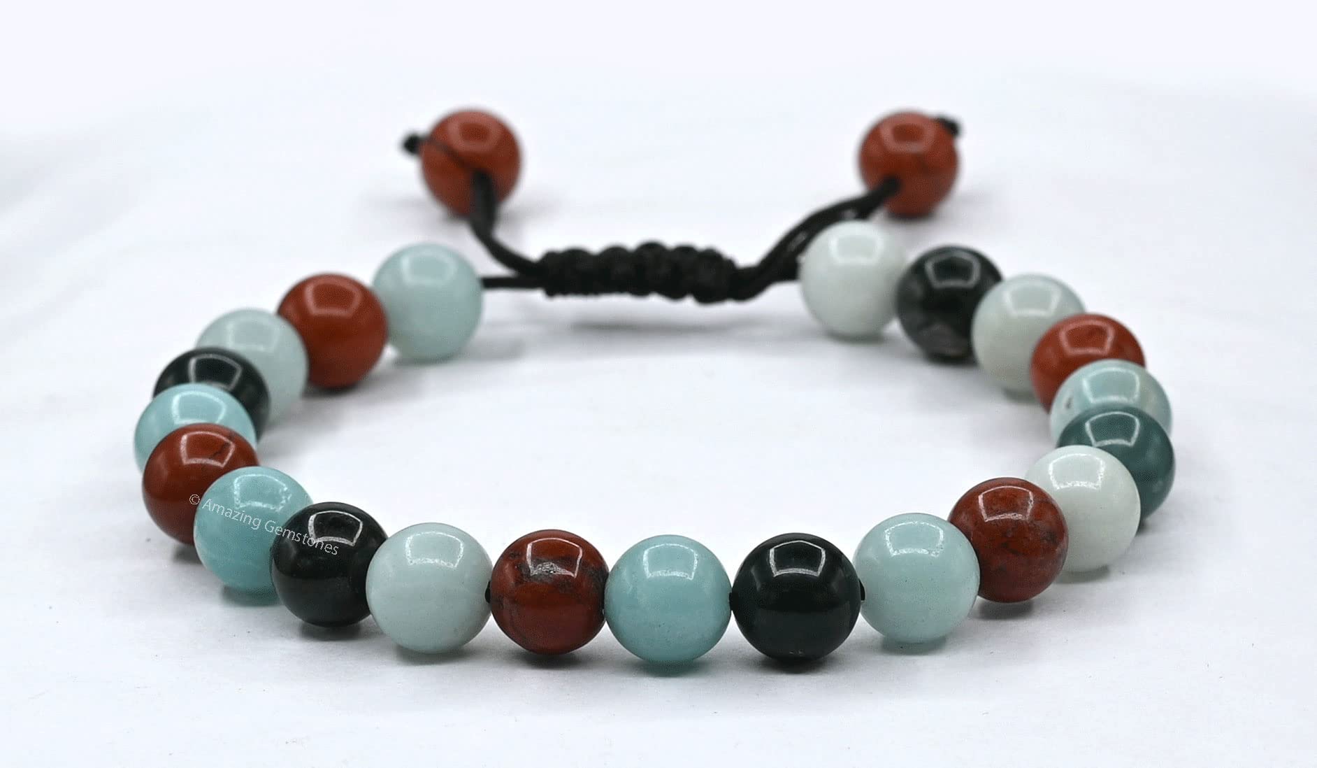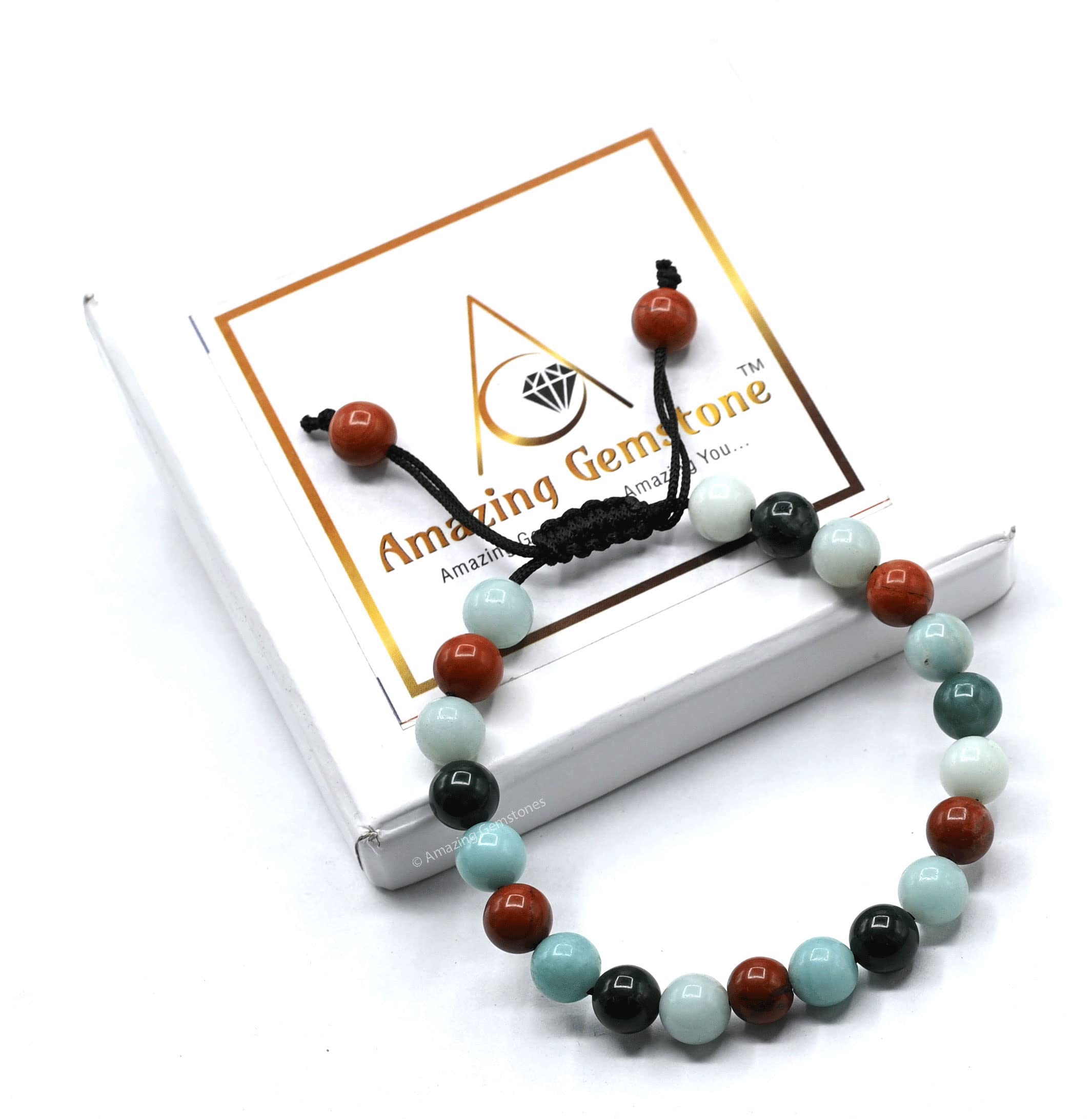 Bracelet for Recovery contains real crystal beads Moss Agate, Amazonite and Red Jasper. Moss Agate for Immunity, Amazonite for Healing & Red Jasper for Tranquility Pulseras Para Hombres Mujer Stocking Stuffers.