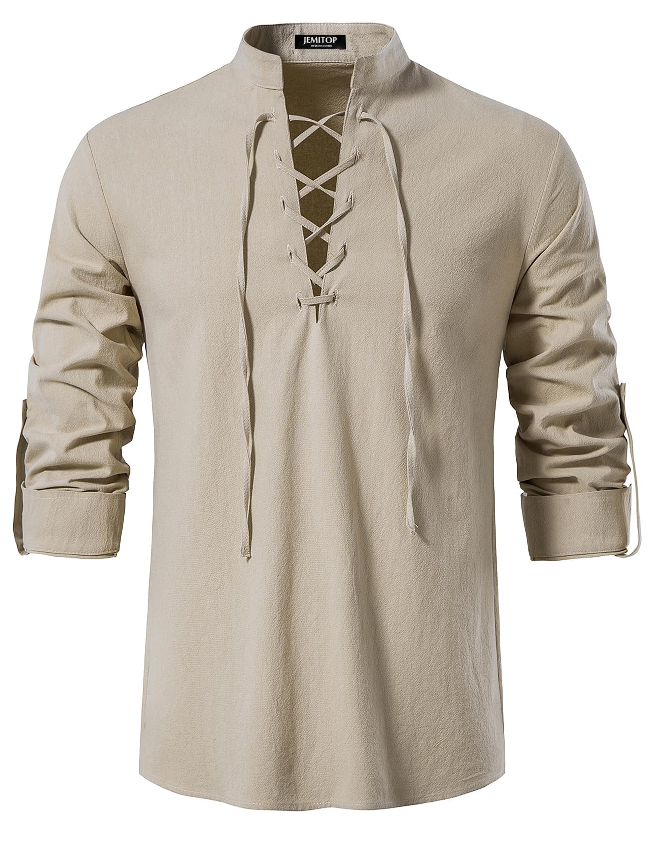 Design Concept: Cosplay costume for renaissance,pirate,viking,medieval,halloween / Retro drawstring shirt / Regular fit / Mandarin collar / Long sleeve / Rolled sleeve