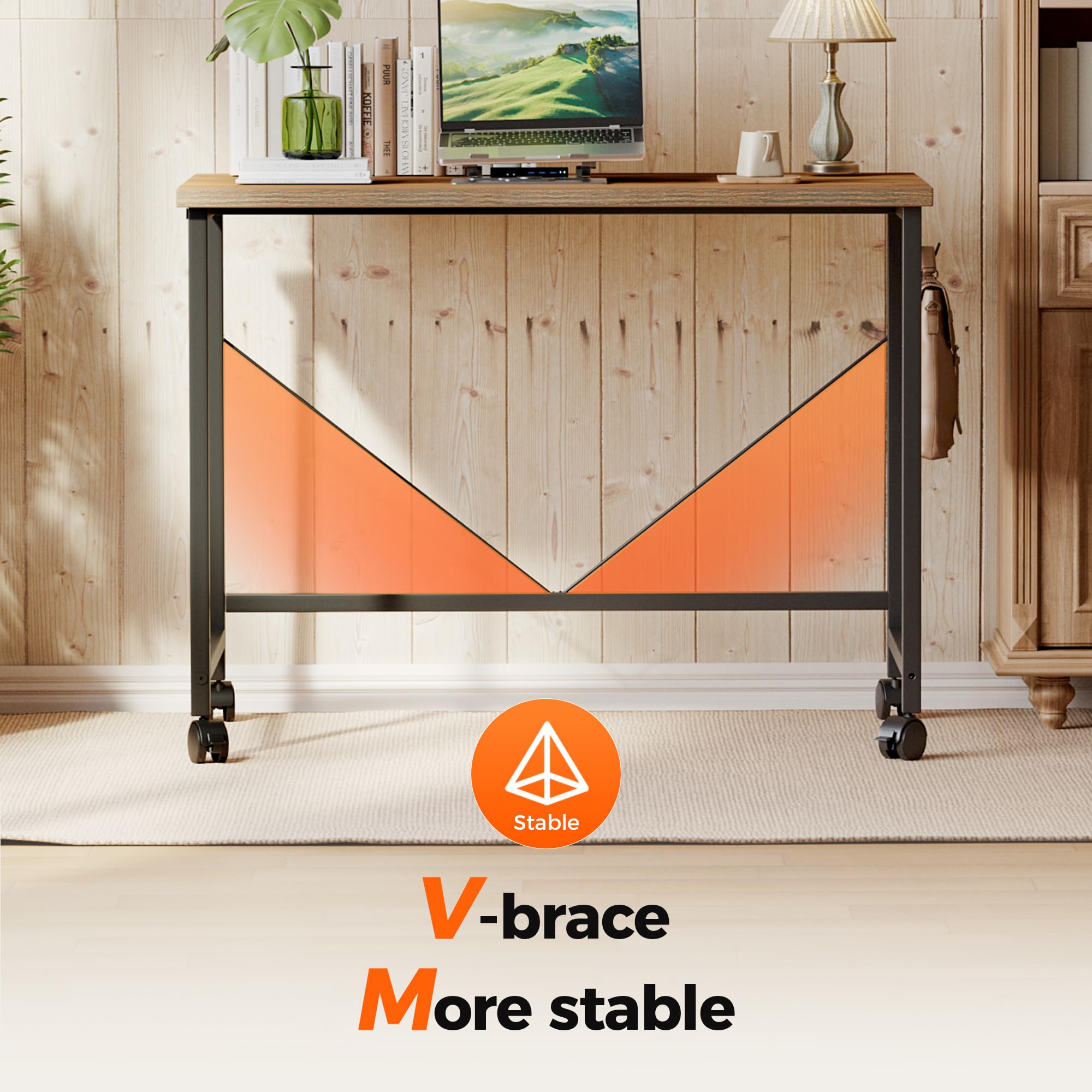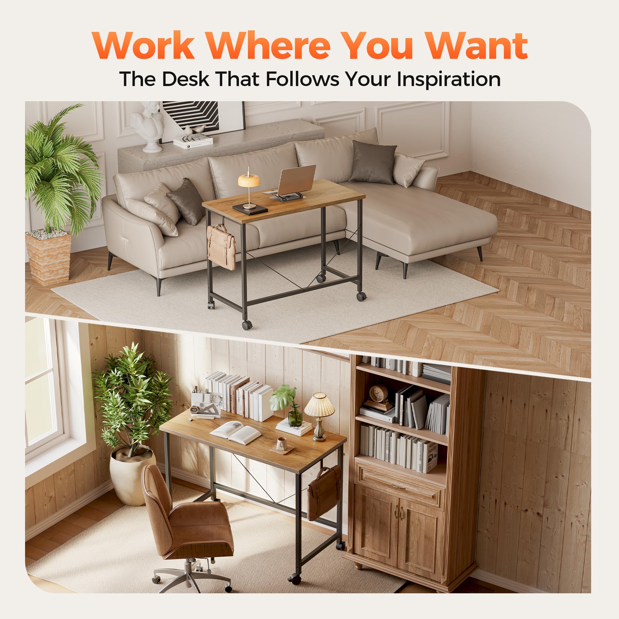 【Style Meets Affordability】Upgrade your space for less! The rustic wood-laminate finish mimics high-end furniture, while the portable desk on wheels costs a fraction. Perfect for students, remote workers, or as a chic kitchen island!