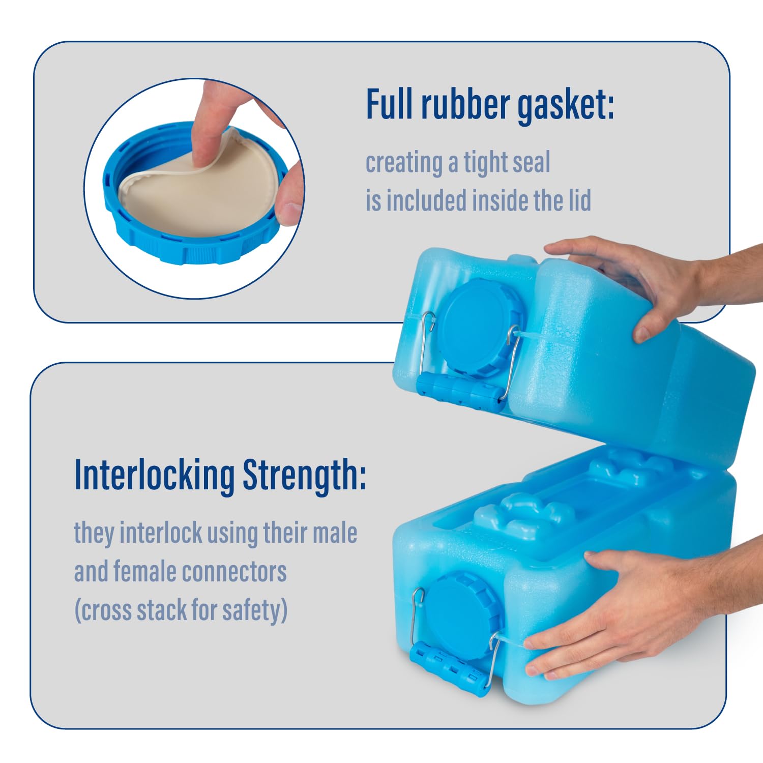 Multi-Purpose Storage Containers: Because of the unique stackability, WaterBrick containers stack like a cube allowing flexibility in storing them in your unique space in the garage, a closet, an R.V. or Boat, under a bed or make an end table out of it so that your water storage serves a dual purpose.