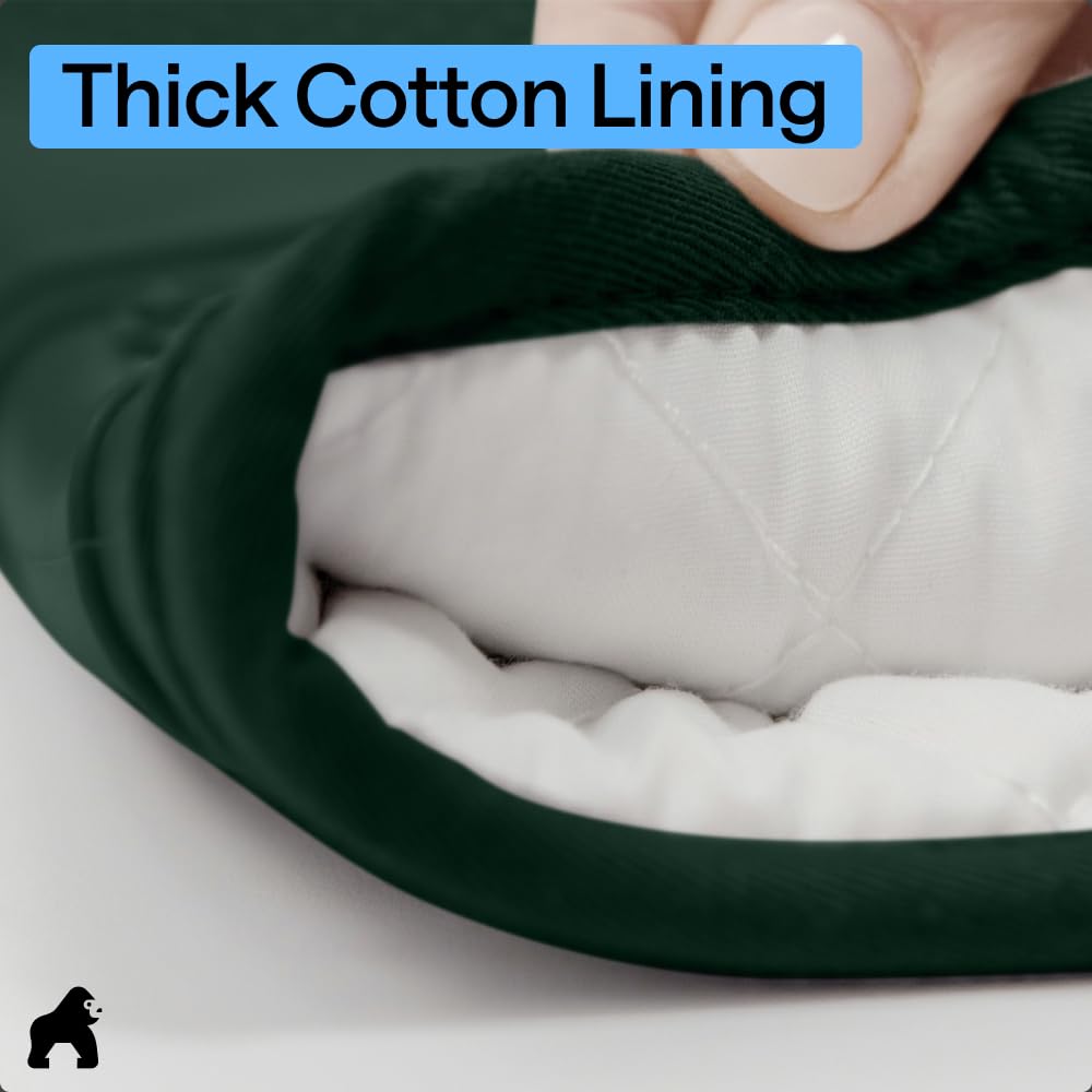 THICK COTTON LINING THROUGHOUT: stay comfortable while you cook; soft cotton lining offers additional protection and comfort, and feel simply amazing; plus, silicone is flexible and conforms easily to your unique grip