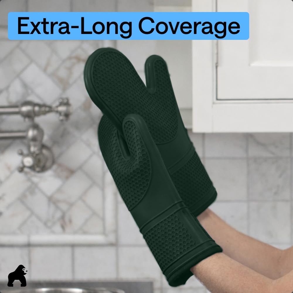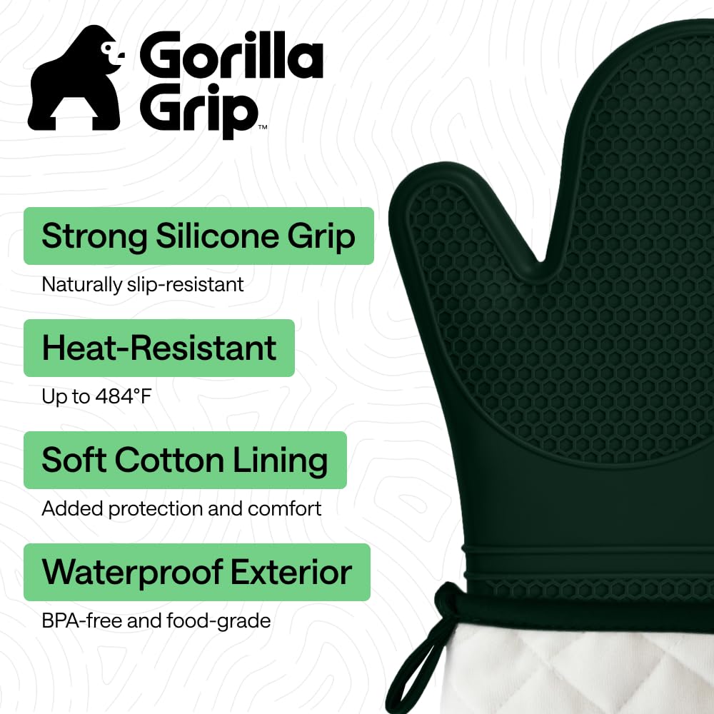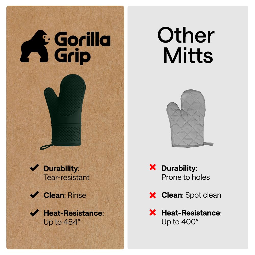 WATERPROOF AND STAIN RESISTANT: no more constantly stained oven mitts; Gorilla Grip Silicone Mitts are both stain resistant and waterproof; spills can easily and instantly be rinsed away under water; hot liquids won’t soak through and scald your skin as they would with other materials