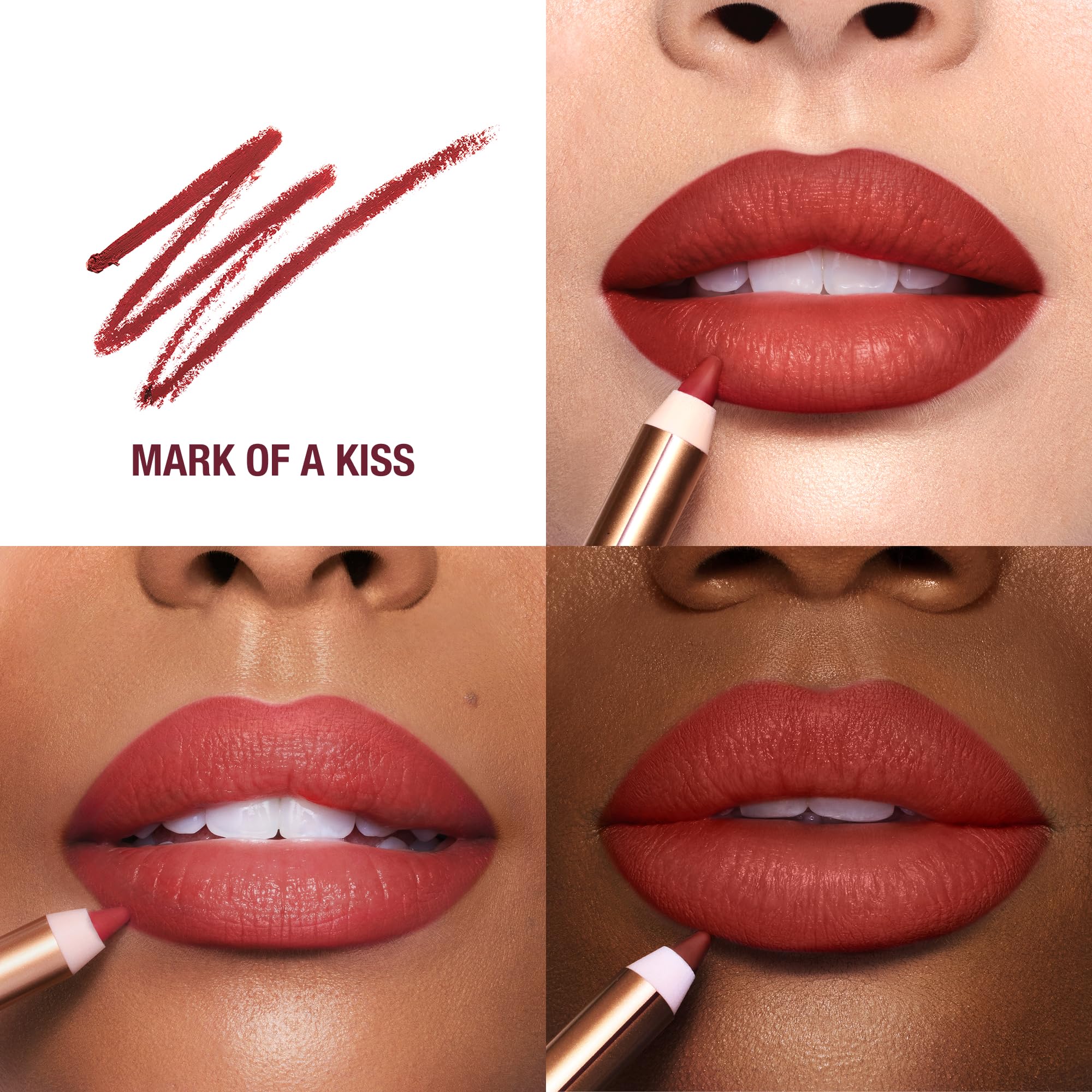 Charlotte Tilbury Lip Cheat, the #1 Lip Liner in the UK Prestige Makeup Market** Darlings, Lip Cheat is my backstage beauty secret for fuller, wider looking lips! Discover Mark of a Kiss, a soft, muted red shade that's super wearable for everyone! The velvety, waterproof formula glides onto your lips and smooths over texture for a seamless line, so you can resize and reshape the look of your lips effortlessly! *Tested on 30 people **Source: Circana Group (UK) Ltd. Retail Tracking Service. Prestige Makeup Lip Liner by product, April '23 - March '24, value sales