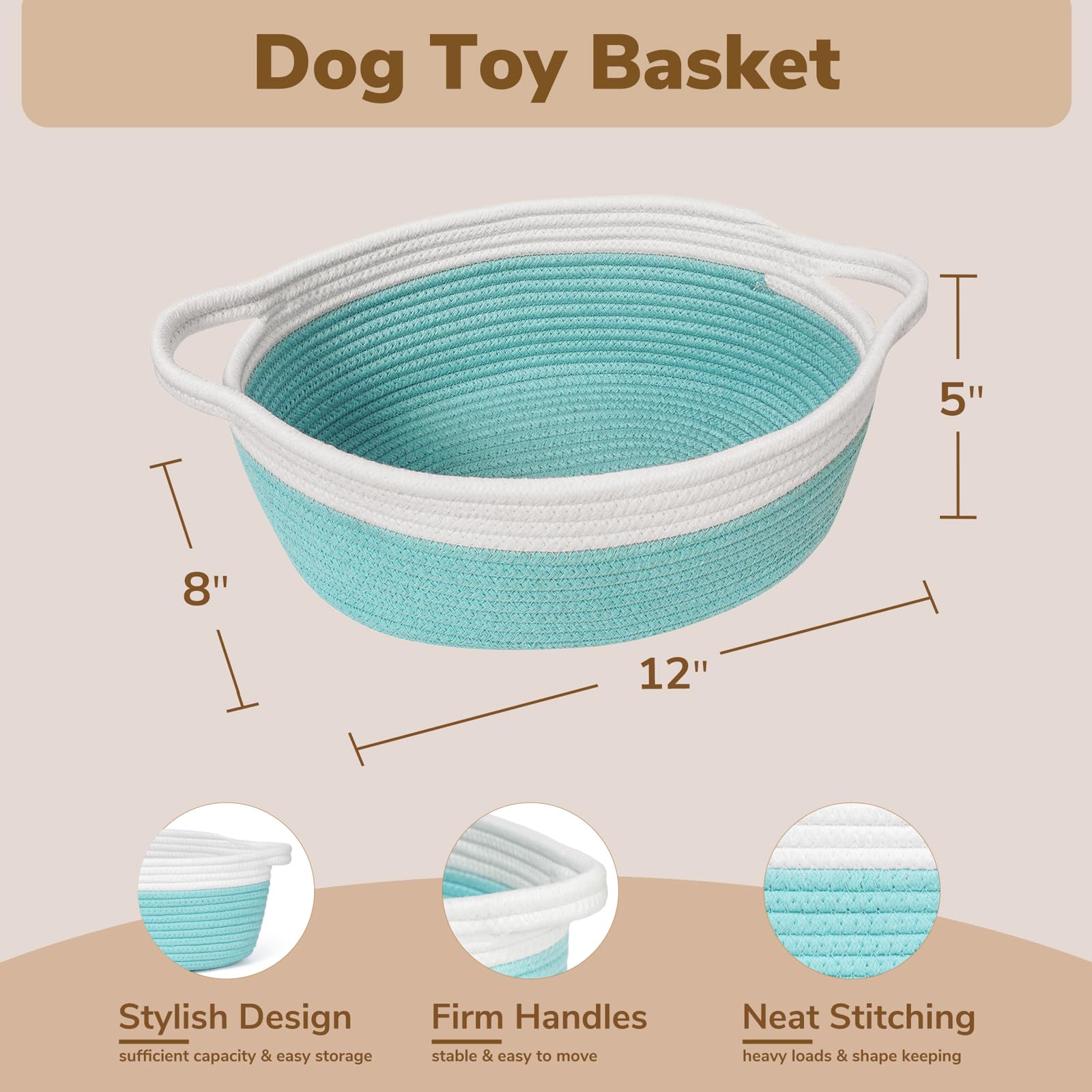Superior materials: Our storage baskets are made of woven cotton thread, which is very soft and won't harm furniture or scratch items. The basket size is 12"x 8" x 5", seamless design is not easy to tear. This storage basket has a collapsible design with built-in separate handles for easy carrying and storage. The basket is shaped like a small boat and is a decorative addition to your cabinet.