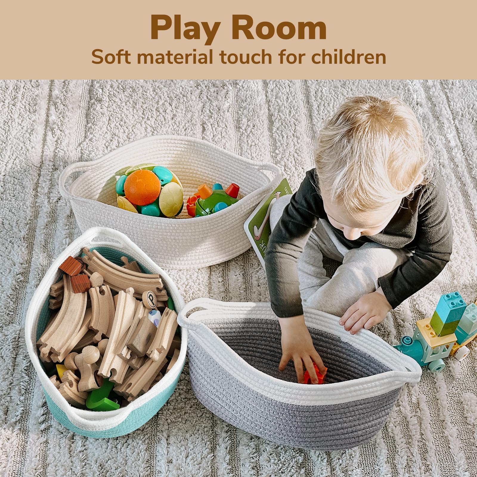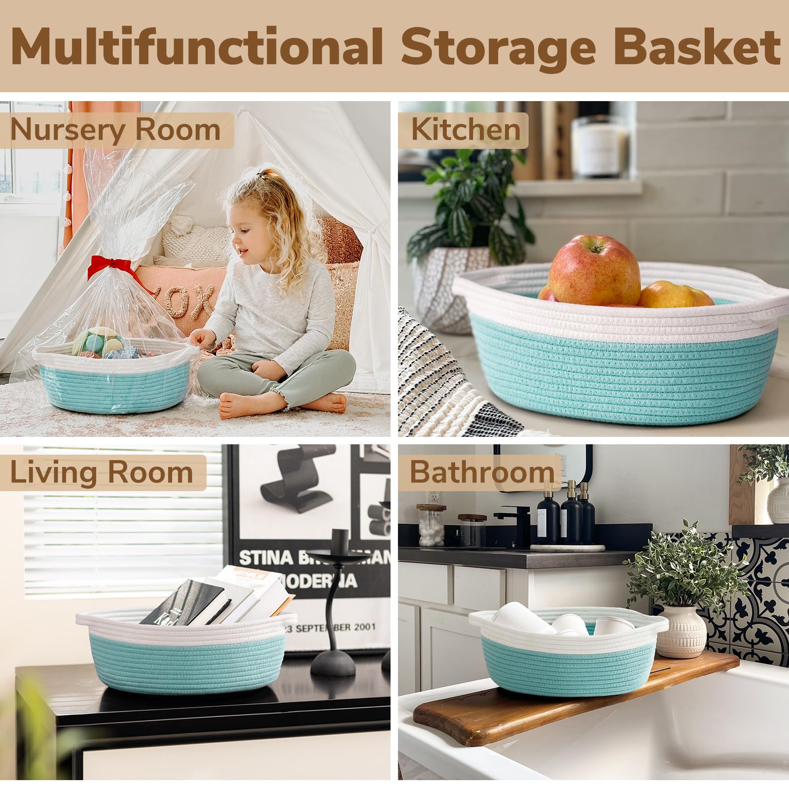 Multi-functional storage basket: This cute basket is versatile enough to store children's toys and can be placed in the living room to store books. It can also be used as a bathroom organizer basket to store towels, toilet paper, toiletries, etc! It can also be used in the kitchen to organize bottles and cans.
