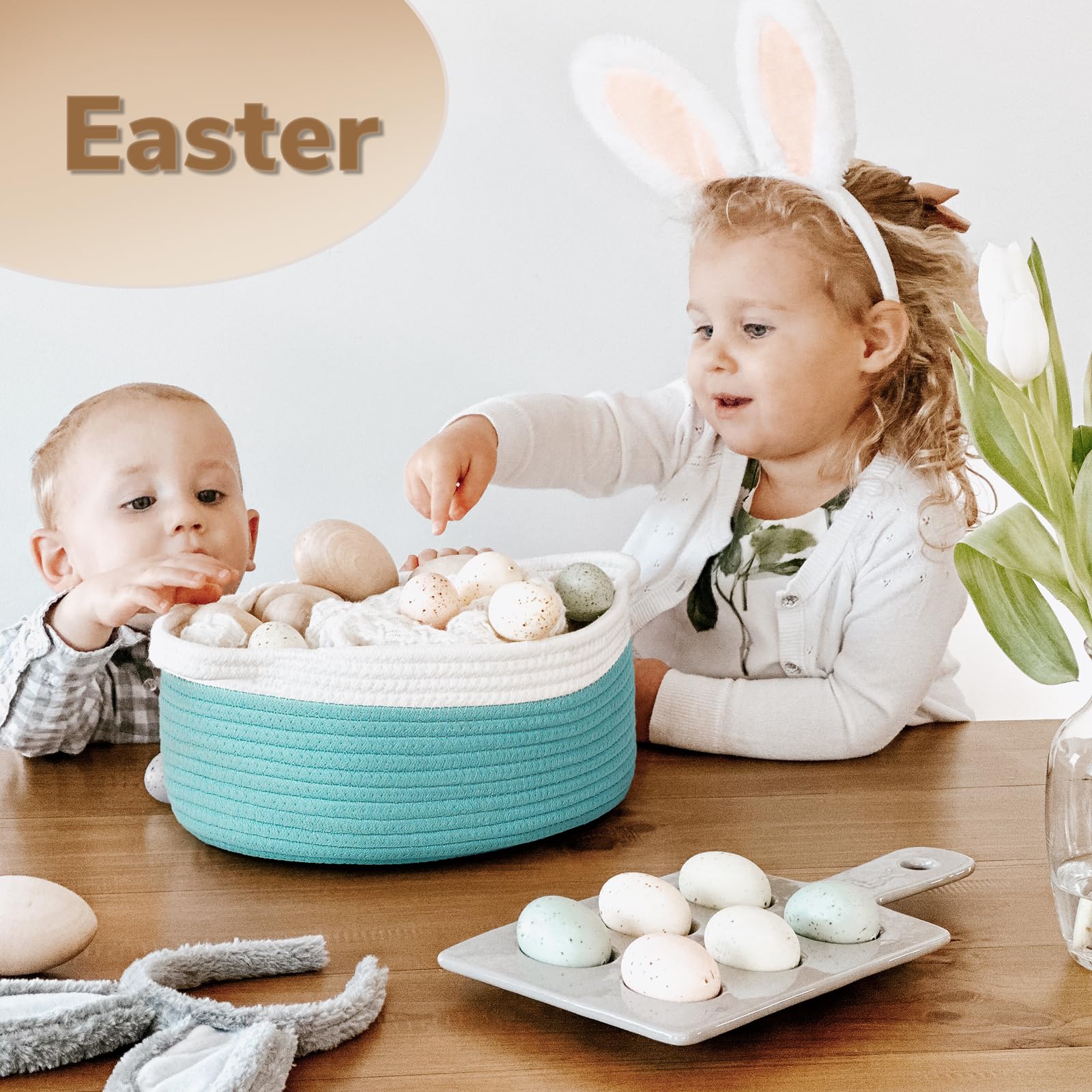 Terrific Easter basket: The cute basket is perfect for holding easter eggs, candy, toys, crafts and other gifts. Not only an easter basket, This basket can also be used as a storage basket in your space,for pet toys, birthday gift storage or for even other holidays like Halloween and Christmas.