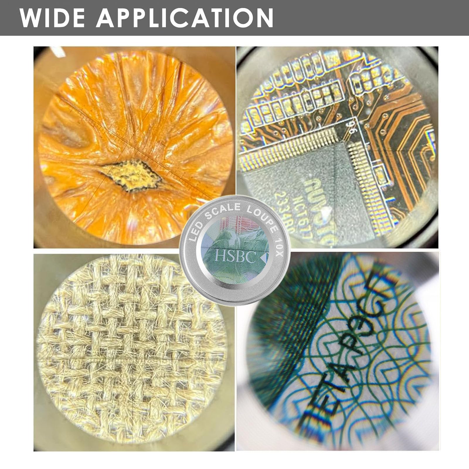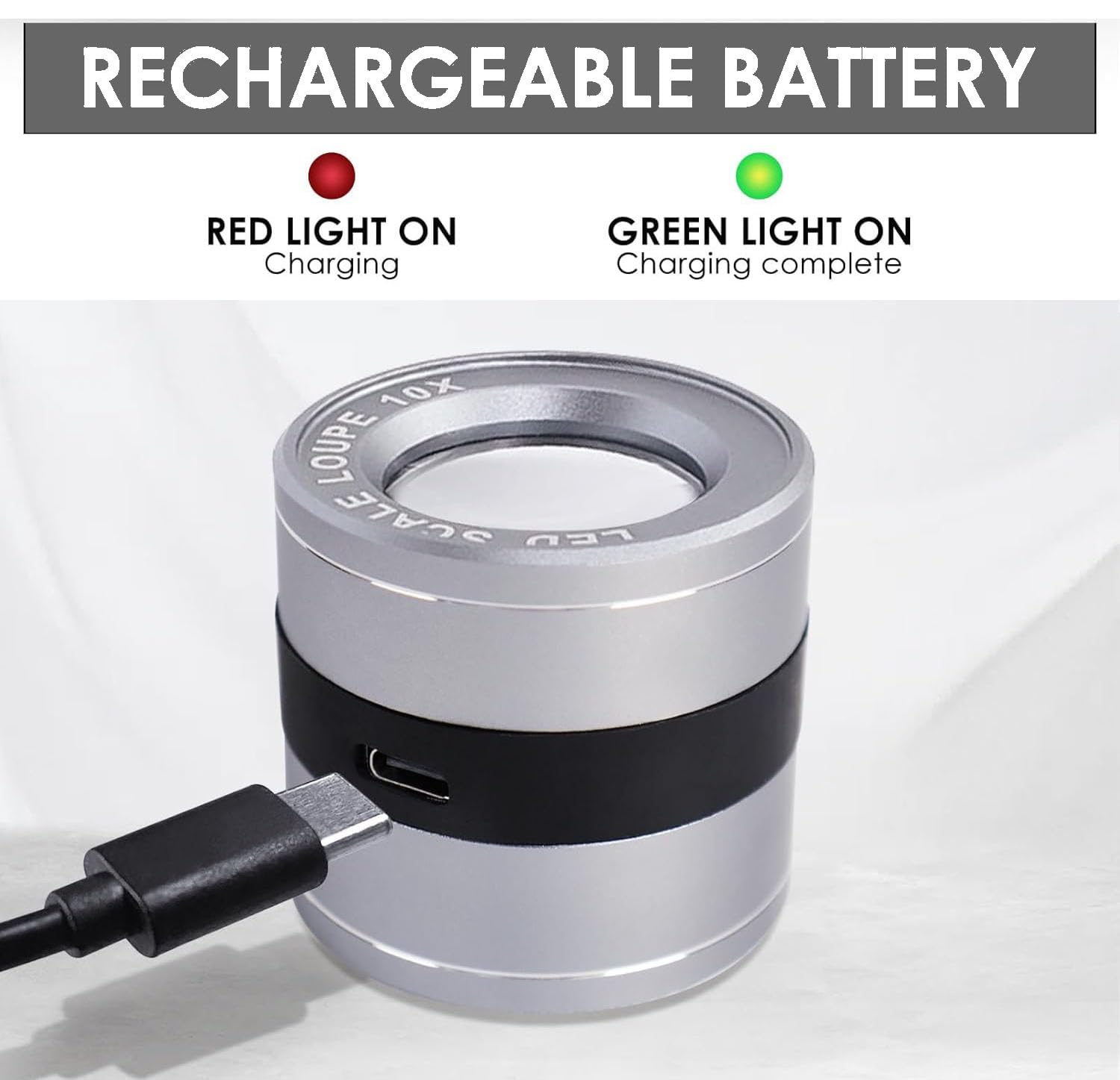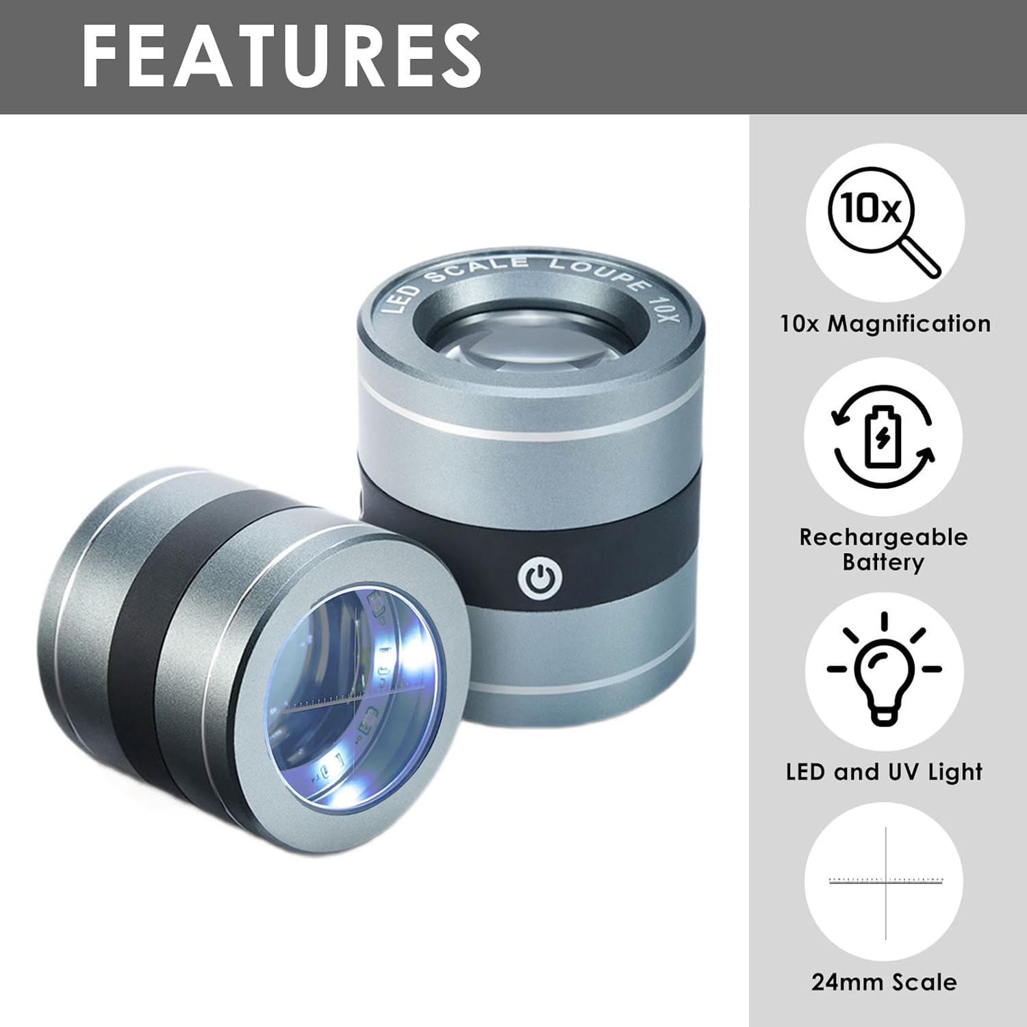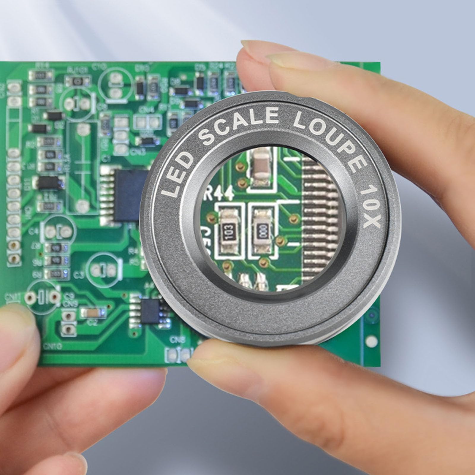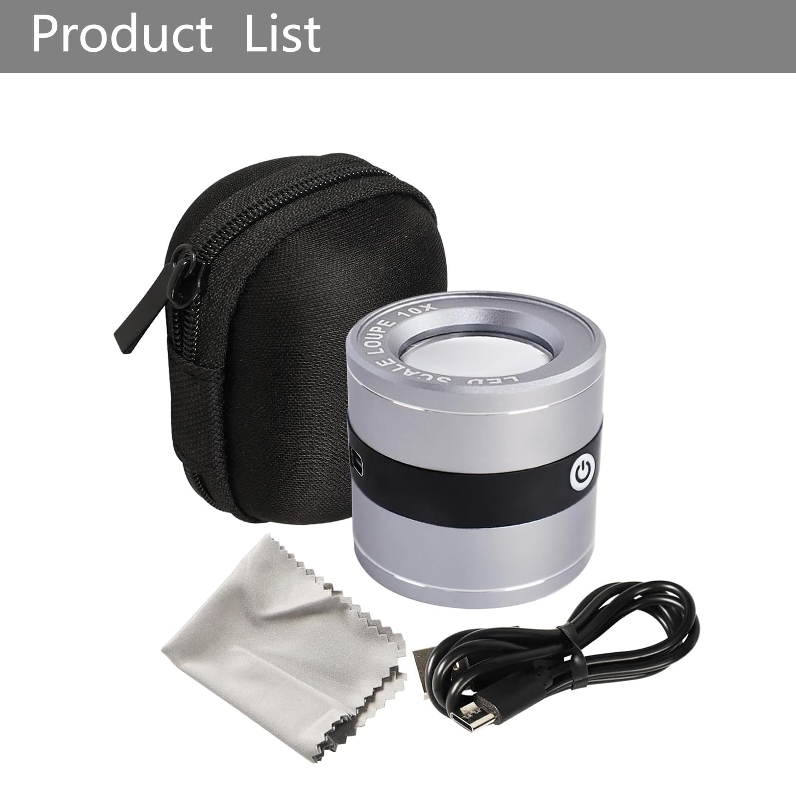 โ ใ10X Triplet Lens & Metal Frameใ10x magnification loupe is generally the most popular and used by jewelers. Our this 10x lighted loupe is 10x magnification and crafted from aluminum alloy and featuring an optical glass lens, ensuring durability for long-term use