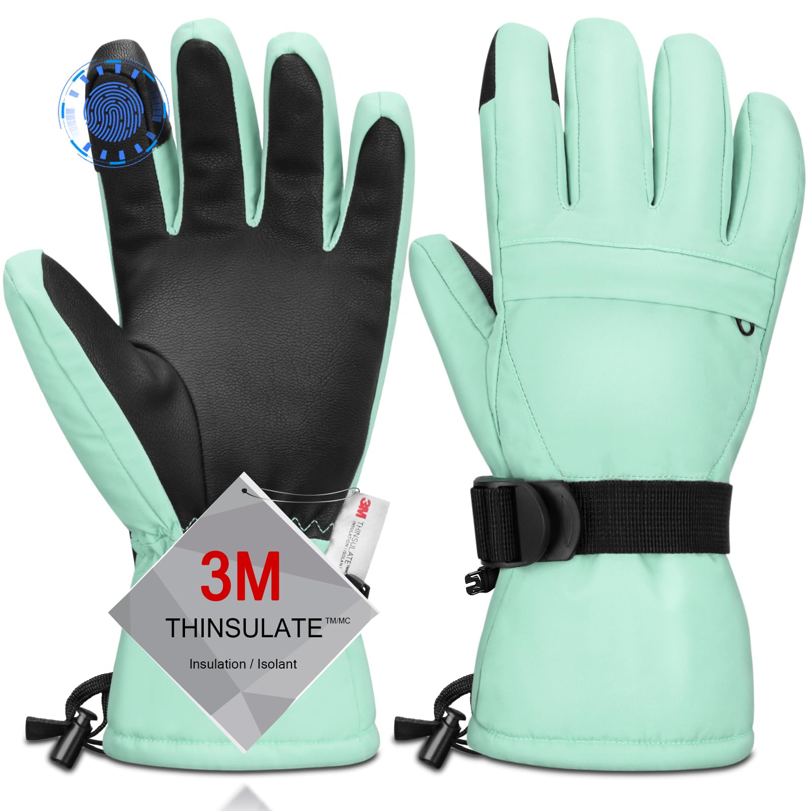 【WARMER and DURABLE MATERIAL】: Snow gloves are made of double thicken locking thermal fleece, waterproof TPU and Splashproof outer materia, which are moisture-wicking, superior breathablity, warmth and comfortable. Resist the temperate under -22°F TO -4°F.