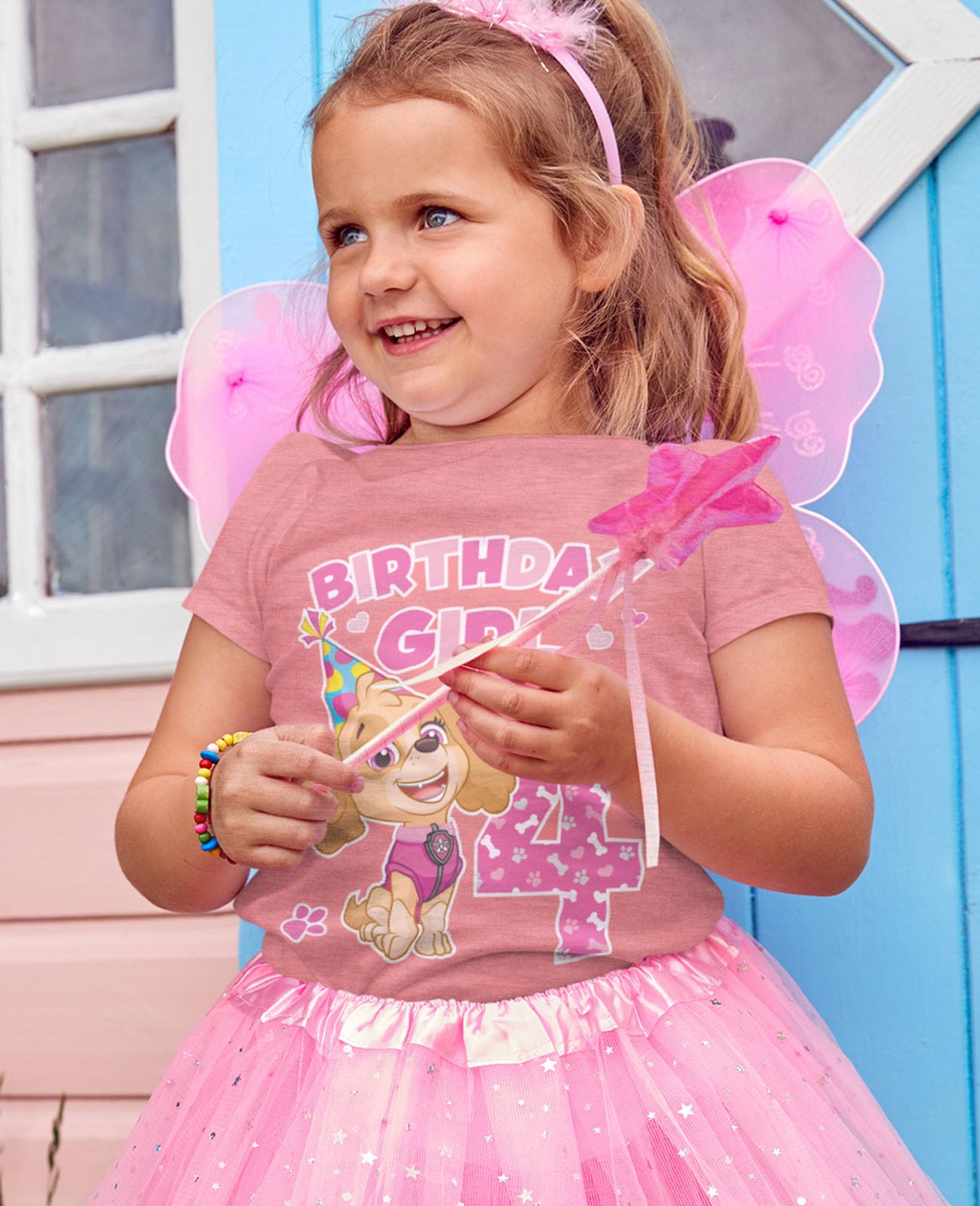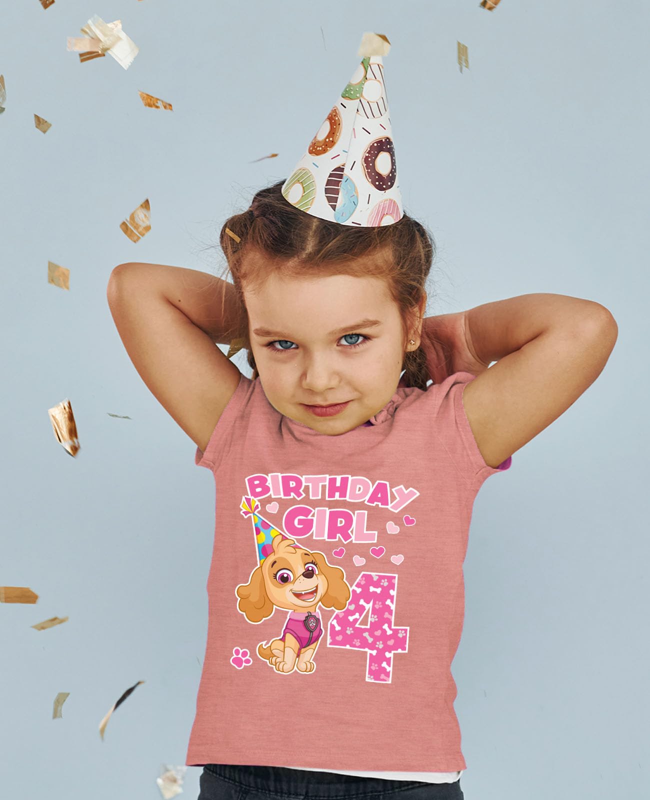 Description Let your birthday girl soar into her special day with this adorable Skye Paw Patrol Birthday Shirt! Designed for fans of everyone's favorite flying pup, this tee is a perfect choice for 4th birthday parties, preschool celebrations, or any pup-themed adventure. Made from soft, breathable cotton, it's gentle on sensitive skin and comfy enough for all-day birthday fun--from blowing out candles to jumping into party games. The vibrant Skye design pops in photos and holds up wash after wash, making it a favorite long after the party's over. Whether you're shopping for your own little one or surprising a Paw Patrol-loving niece or granddaughter, this shirt makes a thoughtful gift for any 4 year old girl. Easy to pair with tutus, jeans, or leggings, it's an instant birthday outfit that brings smiles and tail wags.