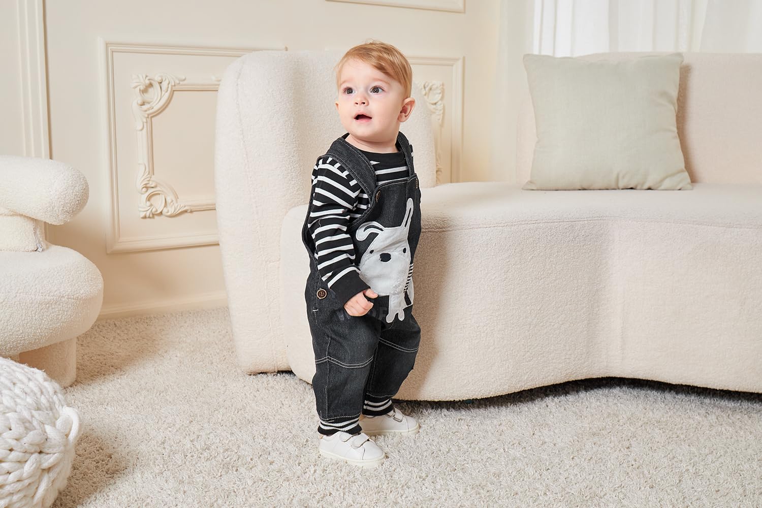 Little boy cute clothes,1 stripe T-shirt and 1 pieces of denim overalls