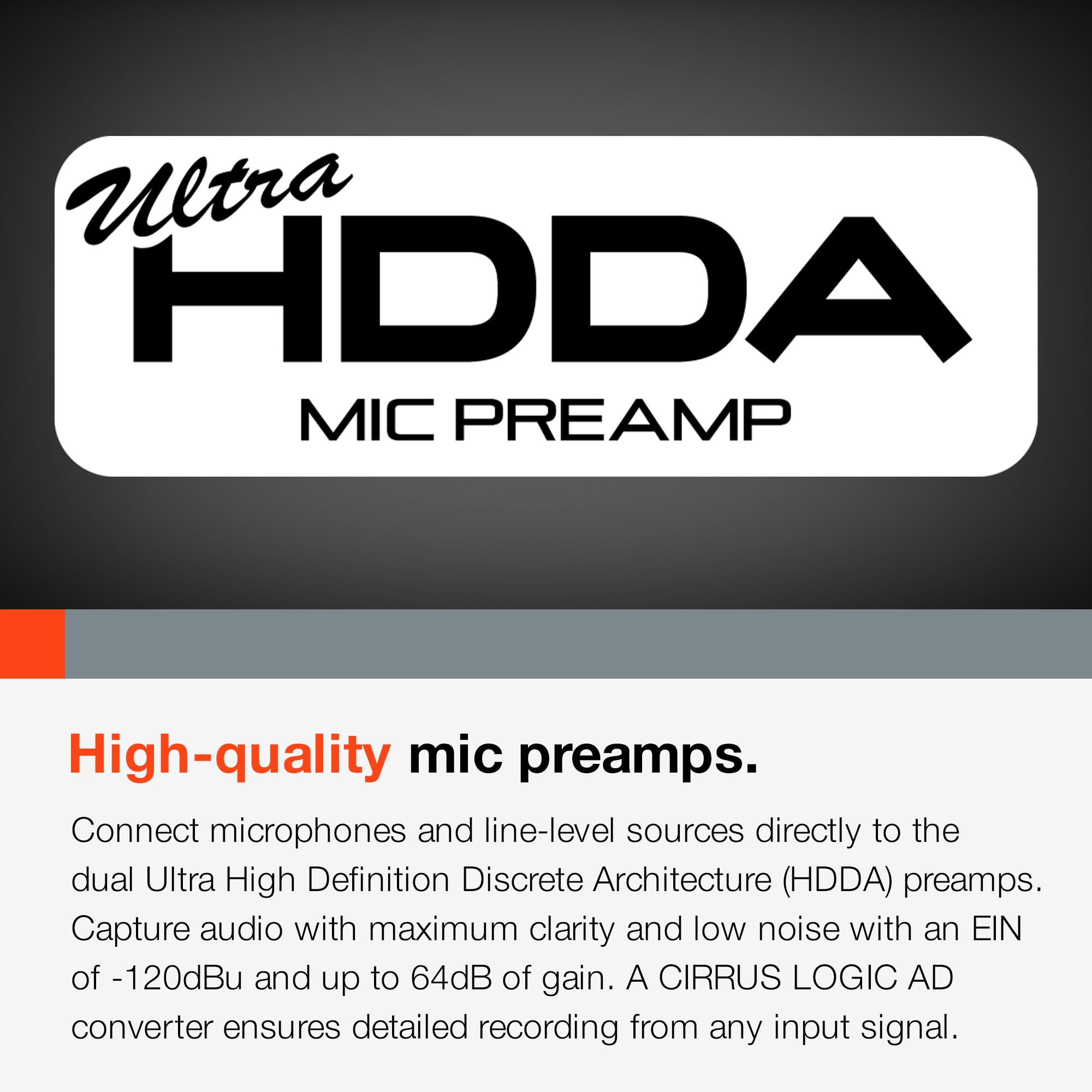 The upgraded HDDA preamps provide up to 64dB of gain and some of the lowest noise levels available