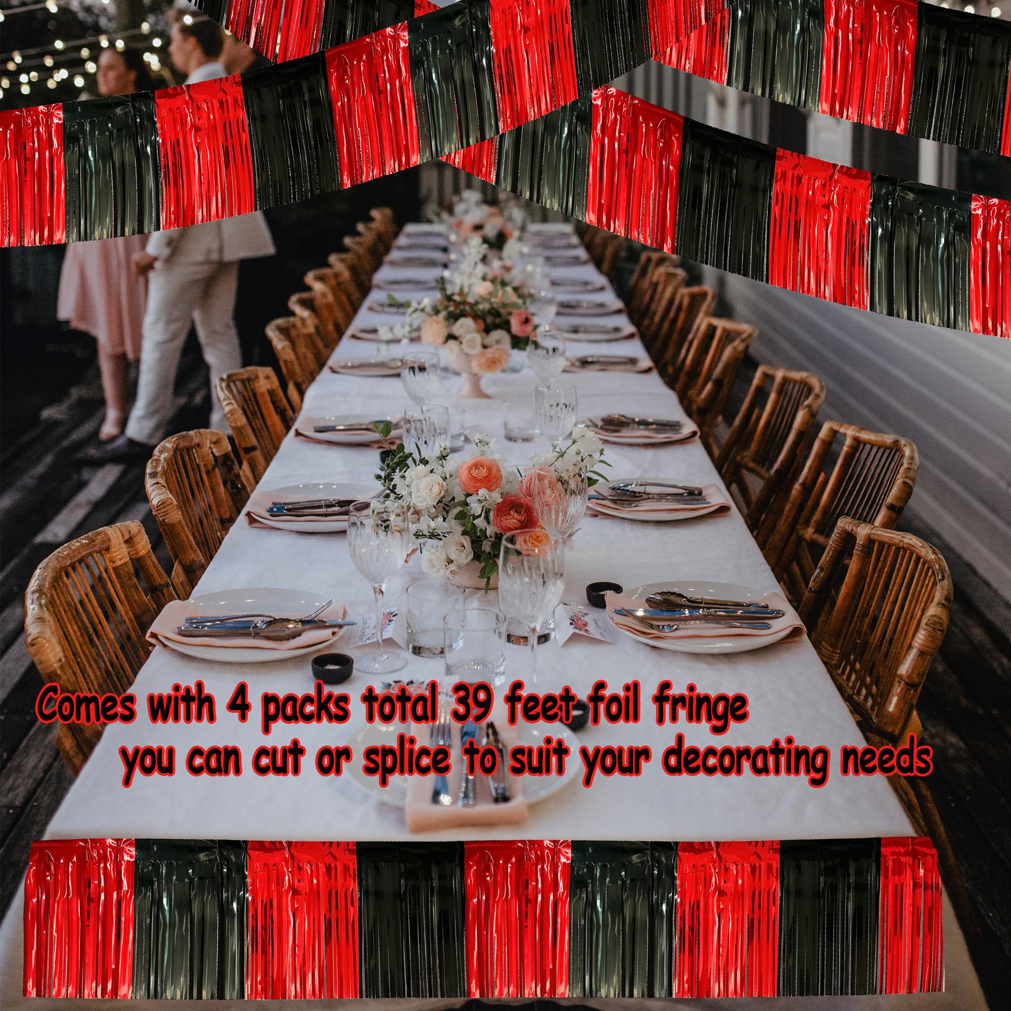 ✨【ADDING FLAIR】✨The black & redfoil fringe garland serves as an awesome party decoration trim, fancy up a party. Hang it on the wall as an iridescent shiny backdrop for photos, your friends will be very happy to take pictures in front of the foil garland background. Hang some foil garland in the windows, attach them to the ceiling, decorate the dessert table as a table skirt or make an elegant entrance curtain for your guests. Your guests will be impressed with your creative party!