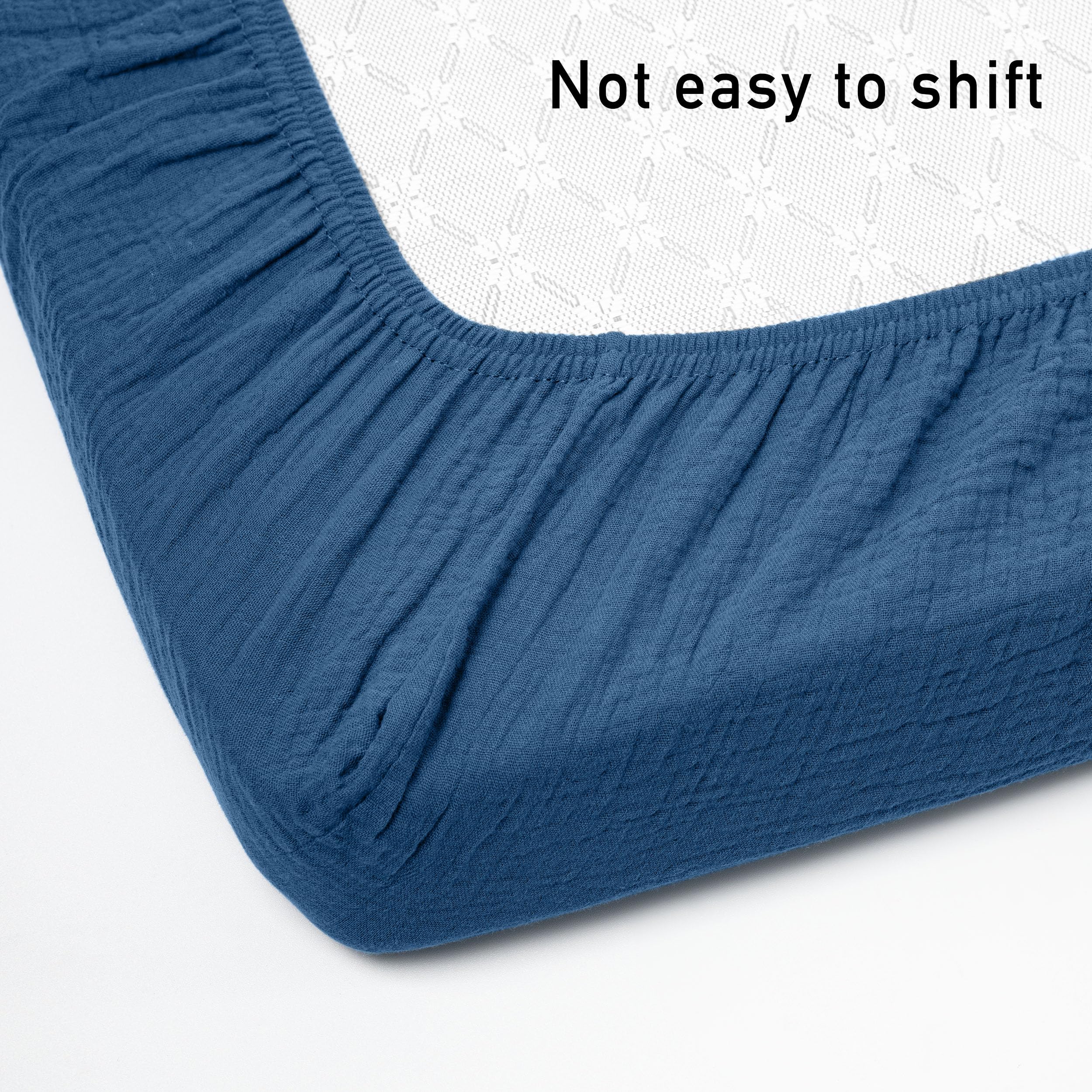 SKIN-FRIENDLY TO BABY: These muslin mini crib sheets are made of 100% cotton (Muslin) for maximum breathable with skin-friendly soft touch. Our mini crib sheets are hypoallergenic, gentle on baby's delicate skin. It will provide super comfortable sleeping environment for your little one.