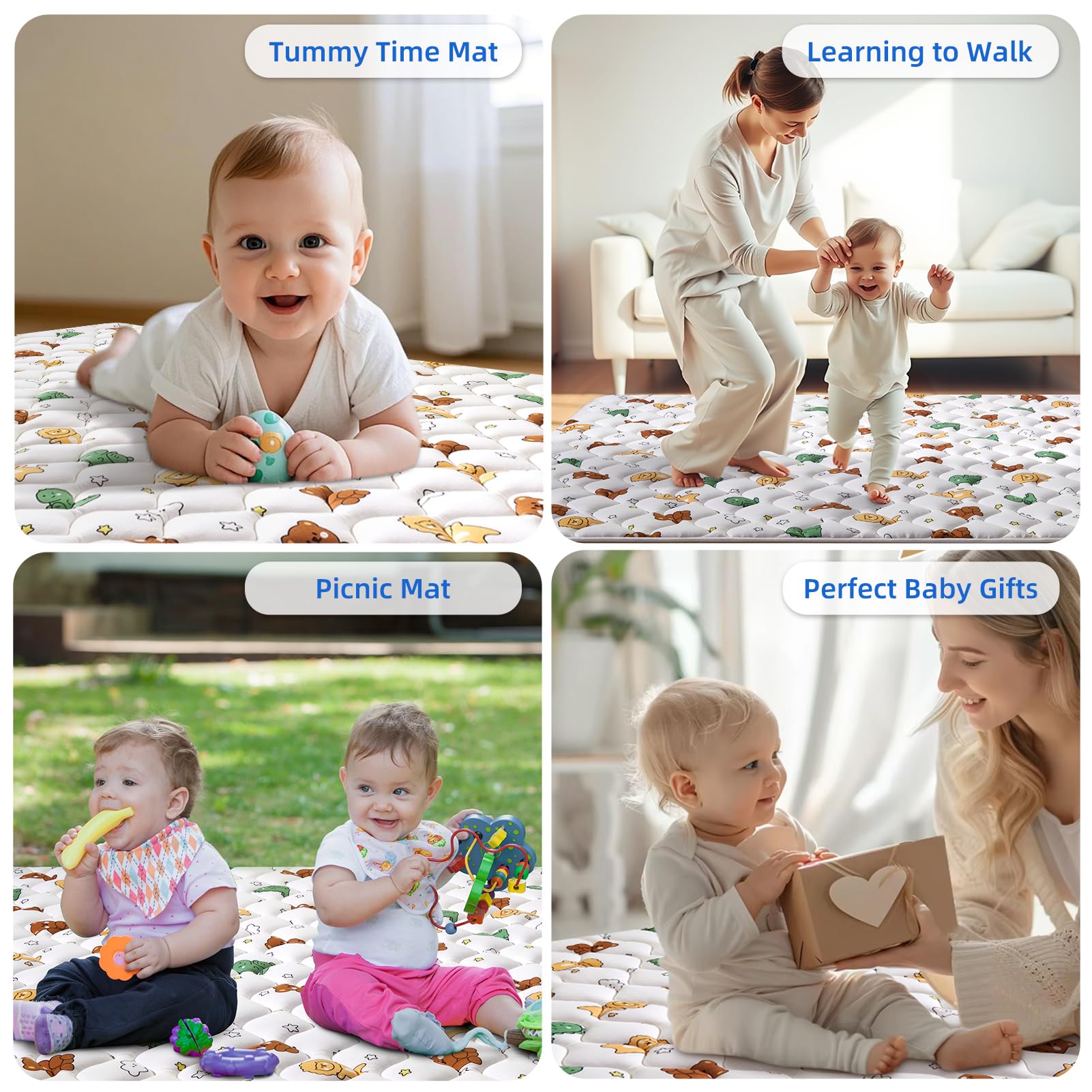 Extra Large Play Mat: Our 72 x 48 inch extra large play mat is perfect for families who want to have fun together. It provides a comfortable place for your little one to crawl, do sit-ups, relax, play, and work on their developing skills. Our play mat is one-piece can be easily folded and packed, making it perfect for on-the-go playtime