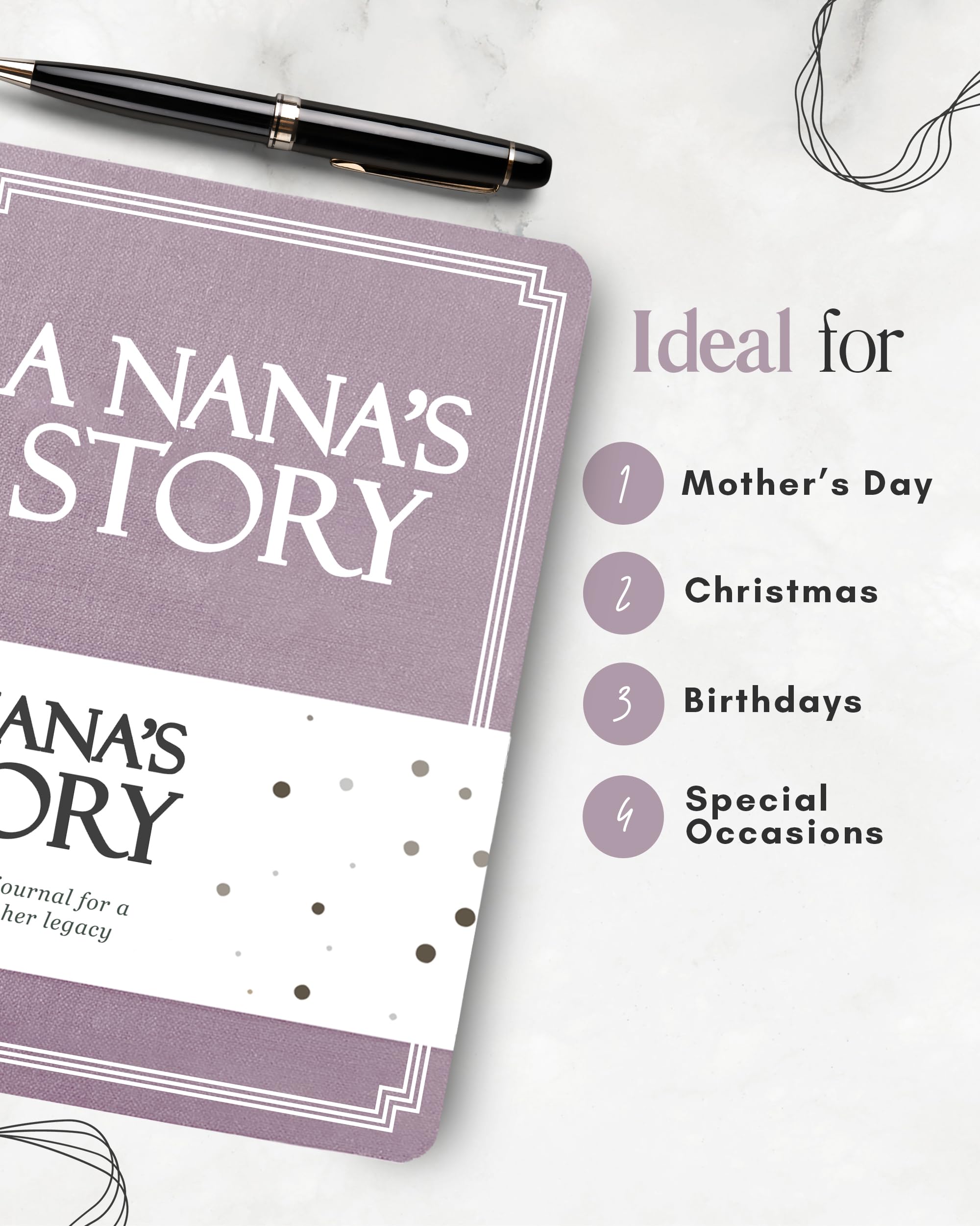 Our guided legacy journal with prompts is a perfect gift idea for a nana. There are more than 250 fun questions to fill out, and these questions are carefully designed to help a nana share her memories and tell her life story in her own way.