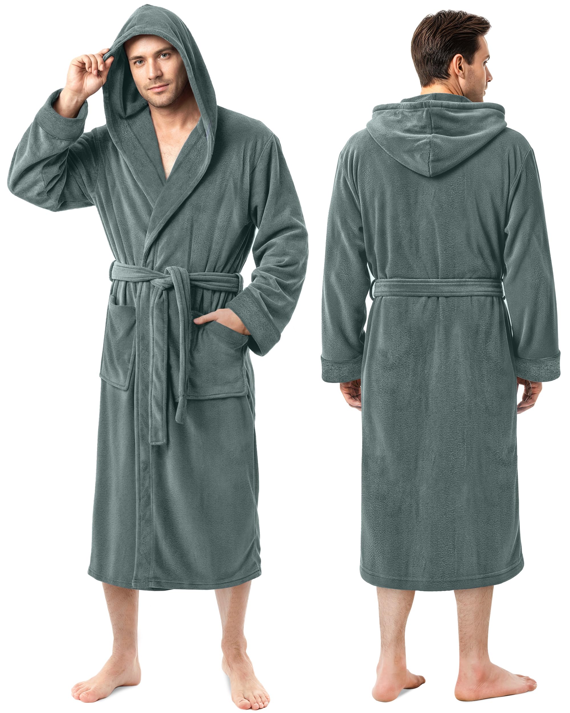 Hooded Fleece Bathrobe - Super soft, plush, hooded fleece bathrobe made from flannel fleece that offers great comfort whenever in use; perfect for lounging, relaxation and a great choice to wear after a tiring day at work.