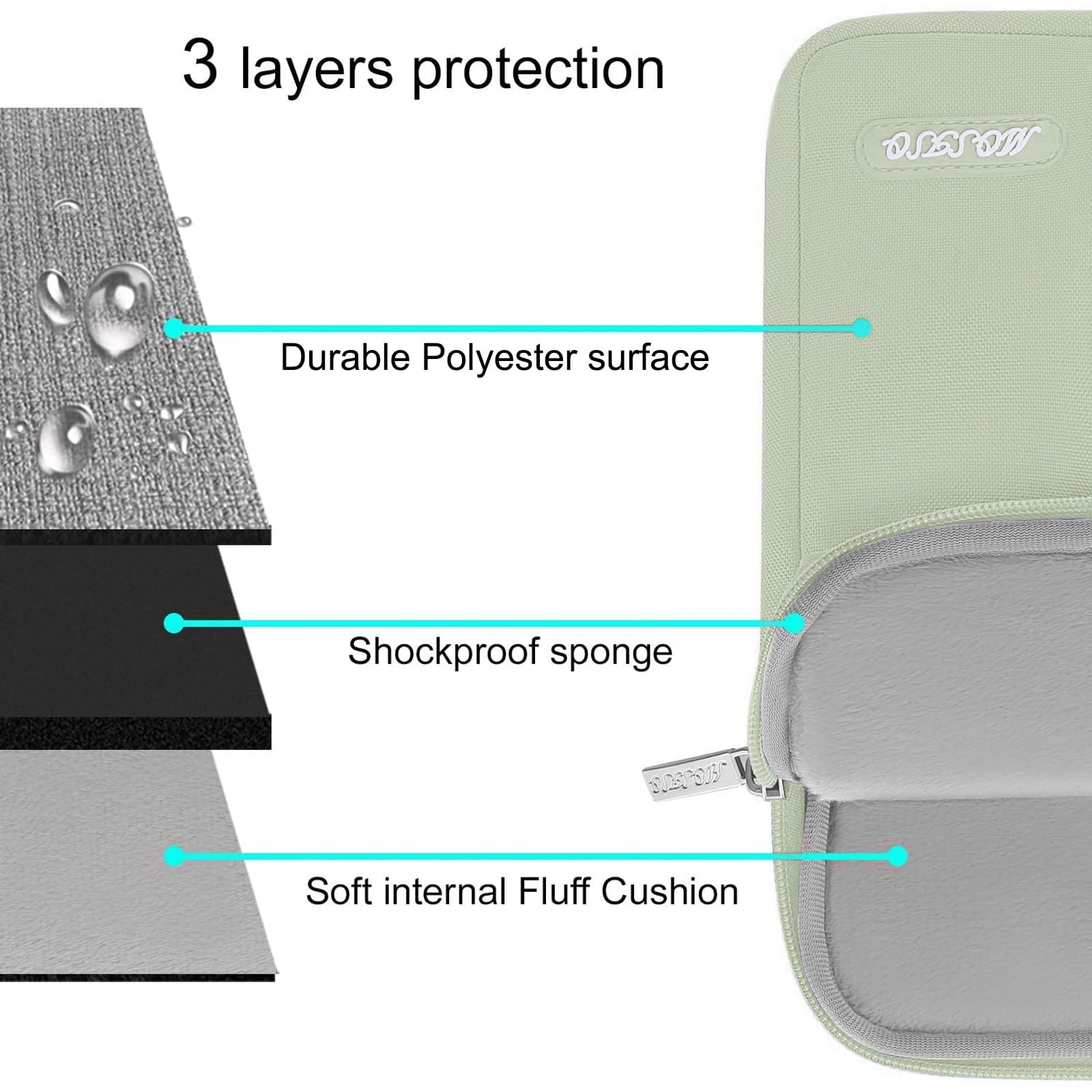 Features a polyester foam padding layer and fluffy fleece fabric lining for bump and shock absorption and protection of your device against bump, shock and accidental scratches.