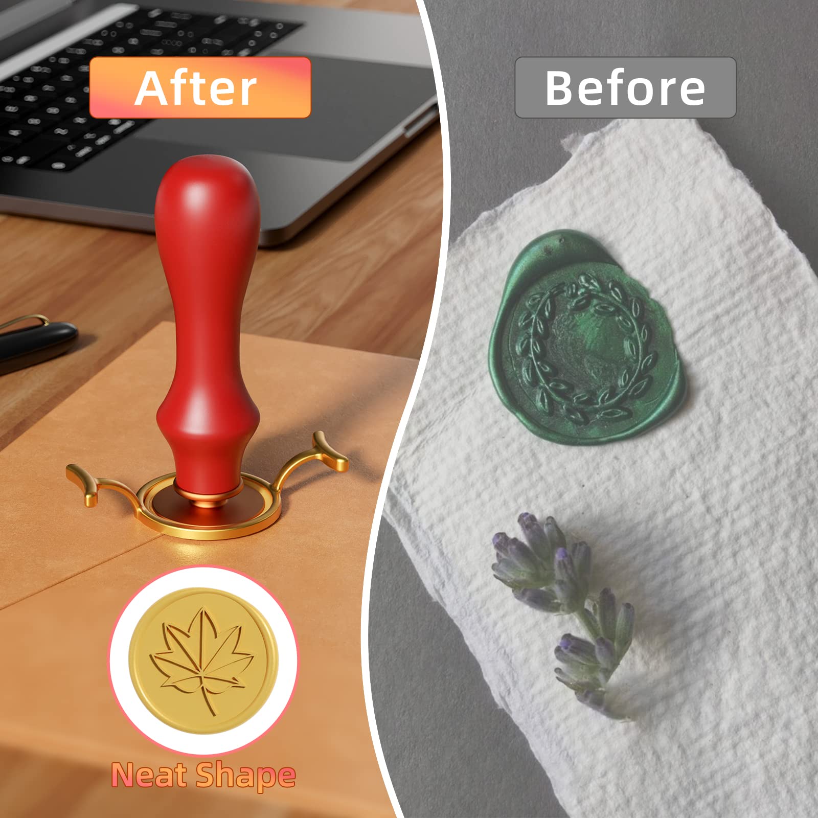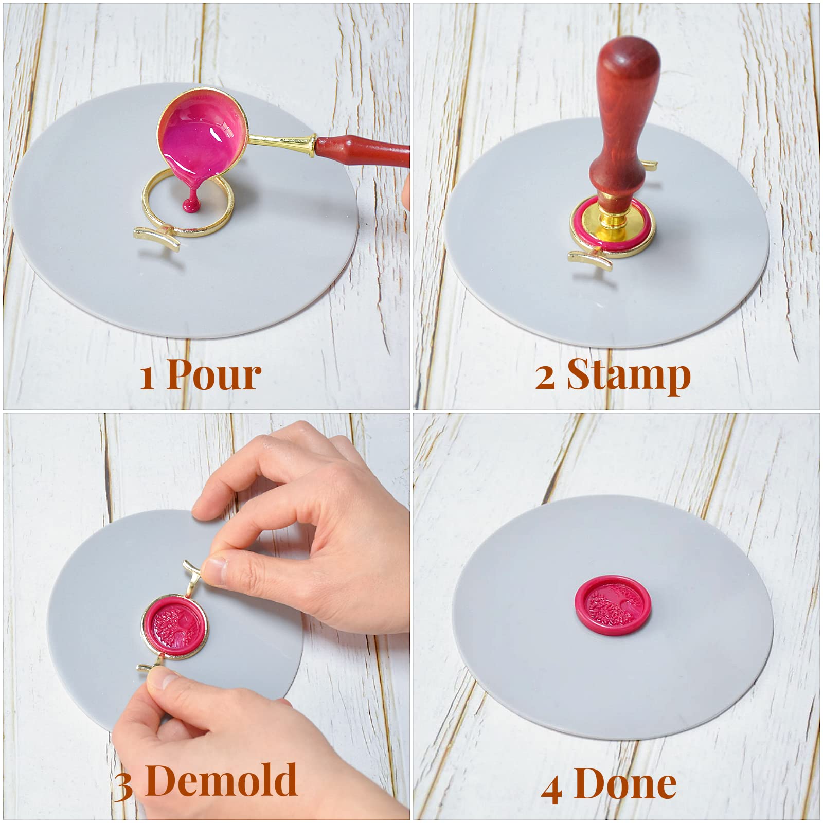 Easy to use: Four steps to get the perfect wax seal. 1. Pour 2. Stamp 3. Wait for cooling 4. Demold. Note that you can pour directly without pressing the mold handle.