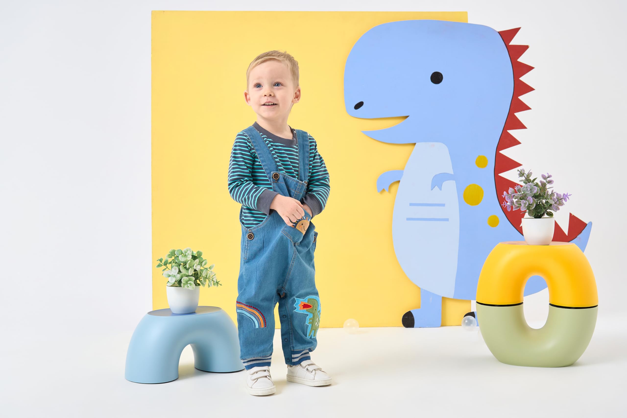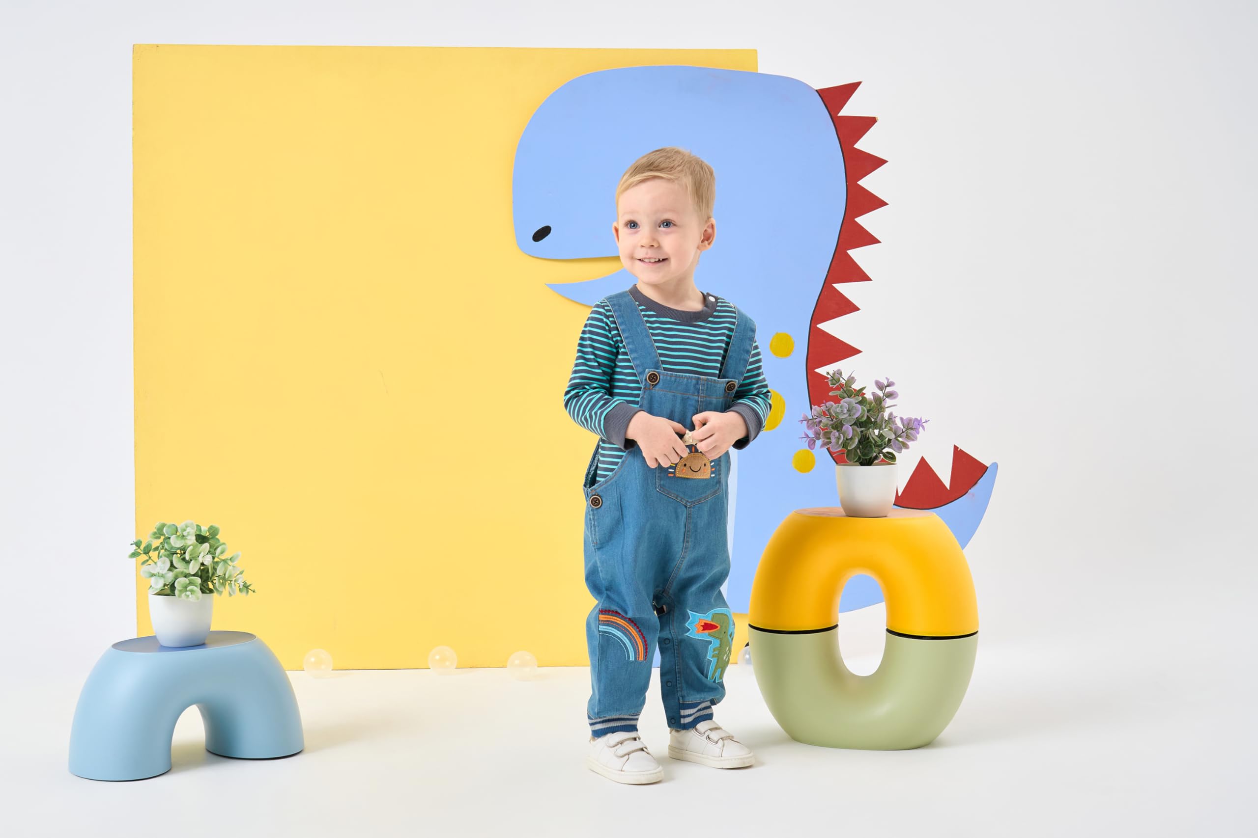 Little boy cute clothes,1 stripe T-shirt and 1 pieces of denim overalls