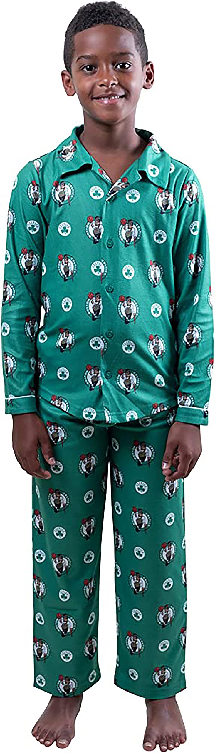 TEAM PRIDE: kids can show their NBA team pride from top to bottom with this set. The bottoms have an all-over print with the team's primary and secondary logos. The top has one large screen print of the primary logo across the front.