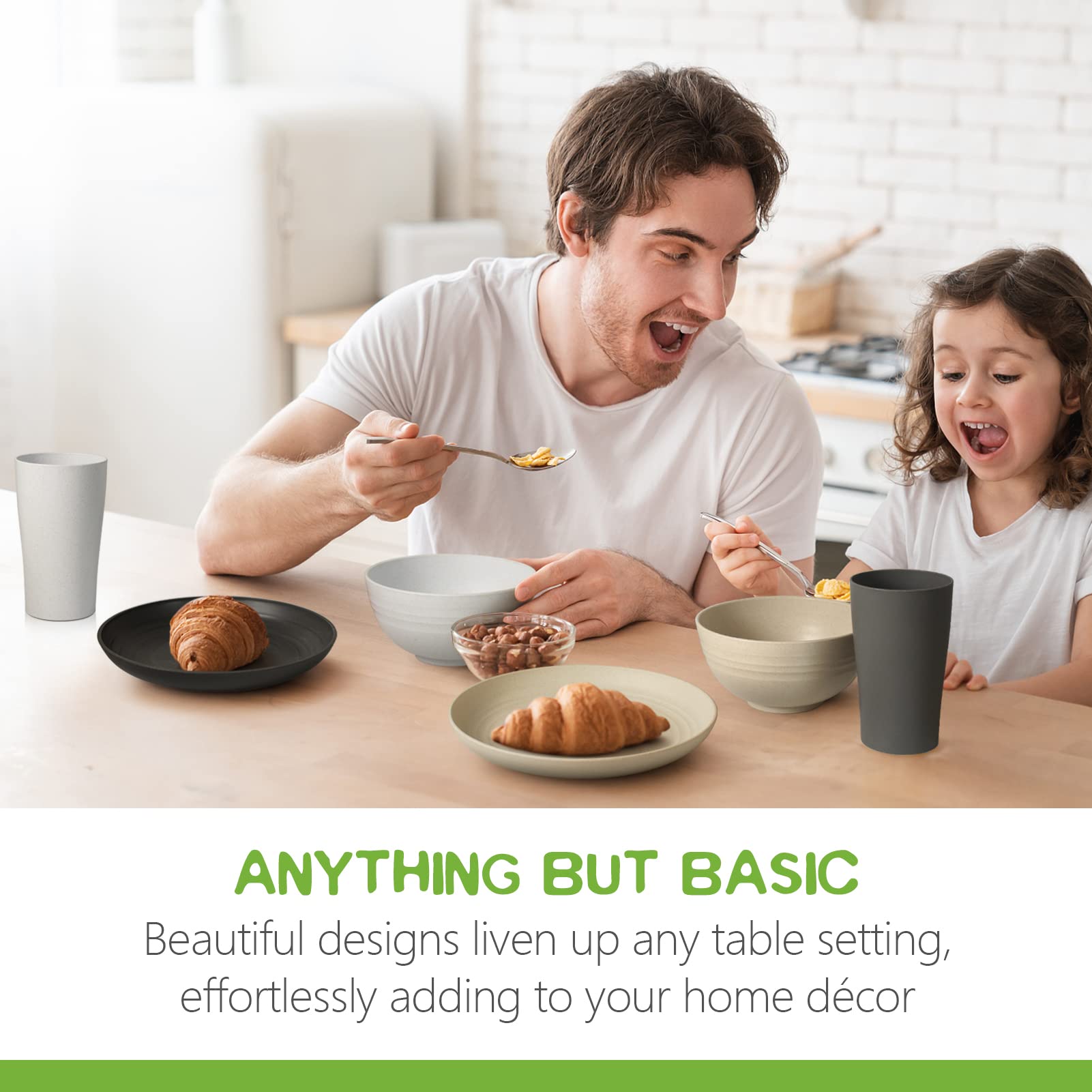 PACKAGE INCLUDE: This wheat straw dinnerware sets include 16 pieces in total. Easy to match your existing flatware.