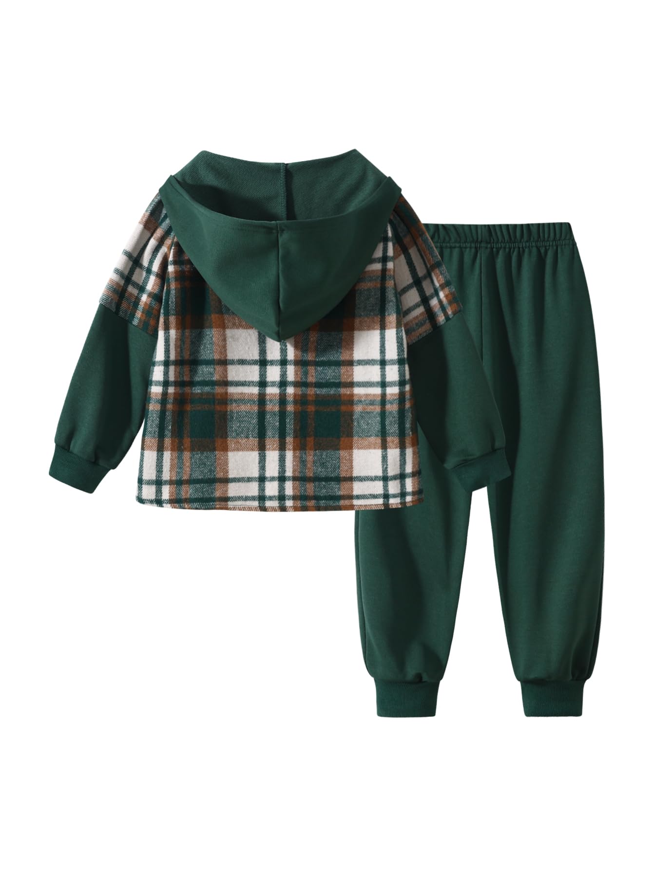 Material: Flannel plaid fabric. Kid boy clothes are soft, breathable, comfy, and skin-friendly. They are warm and ideal for fall, Winter, and spring sweatsuit sets.
