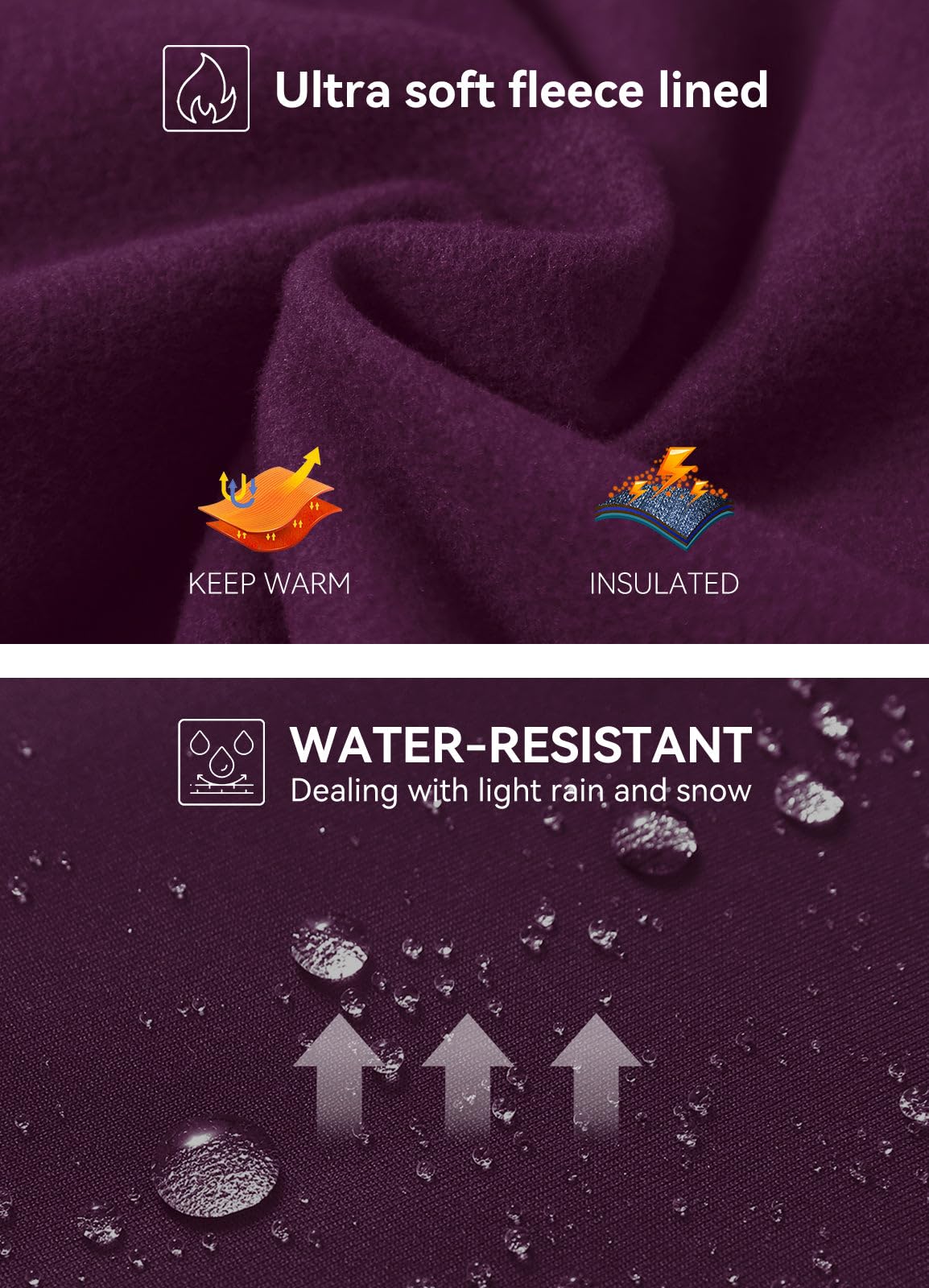 Warm & Water Resistant: The fleece lined leggings women is made of soft fleece inner layer traps heat to keep you warm & comfortable, perfect for cold days under 40°F. Water resistant fabric can handle light rain for a short time or keep dry on snowy days and provide wind protection.