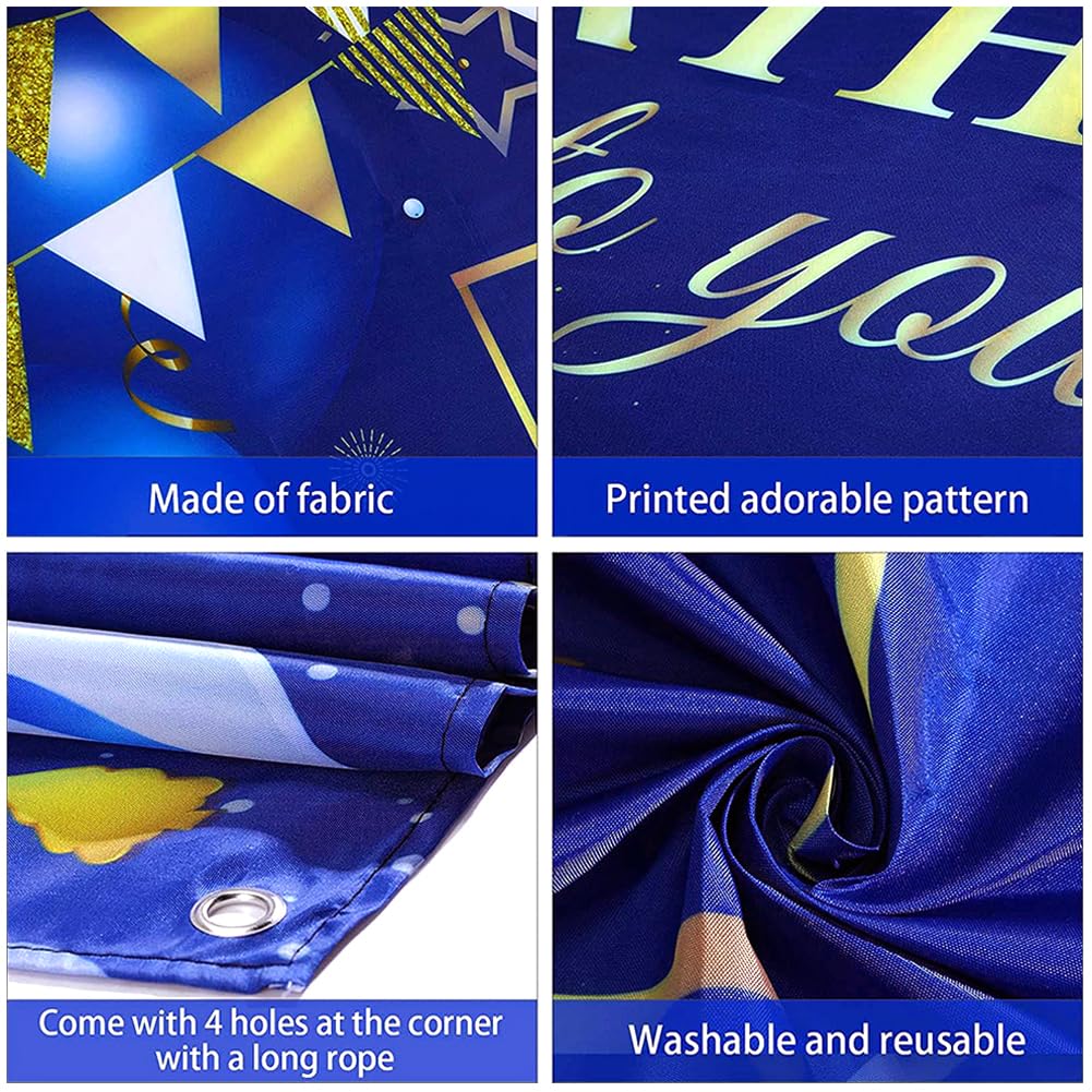 Navy blue gold happy birthday sign decoration banner comes with 4 holes at the corner with a long rope use 5 meters sturdy hemp rope, it can easy to pass through the copper buckle and hang it up.