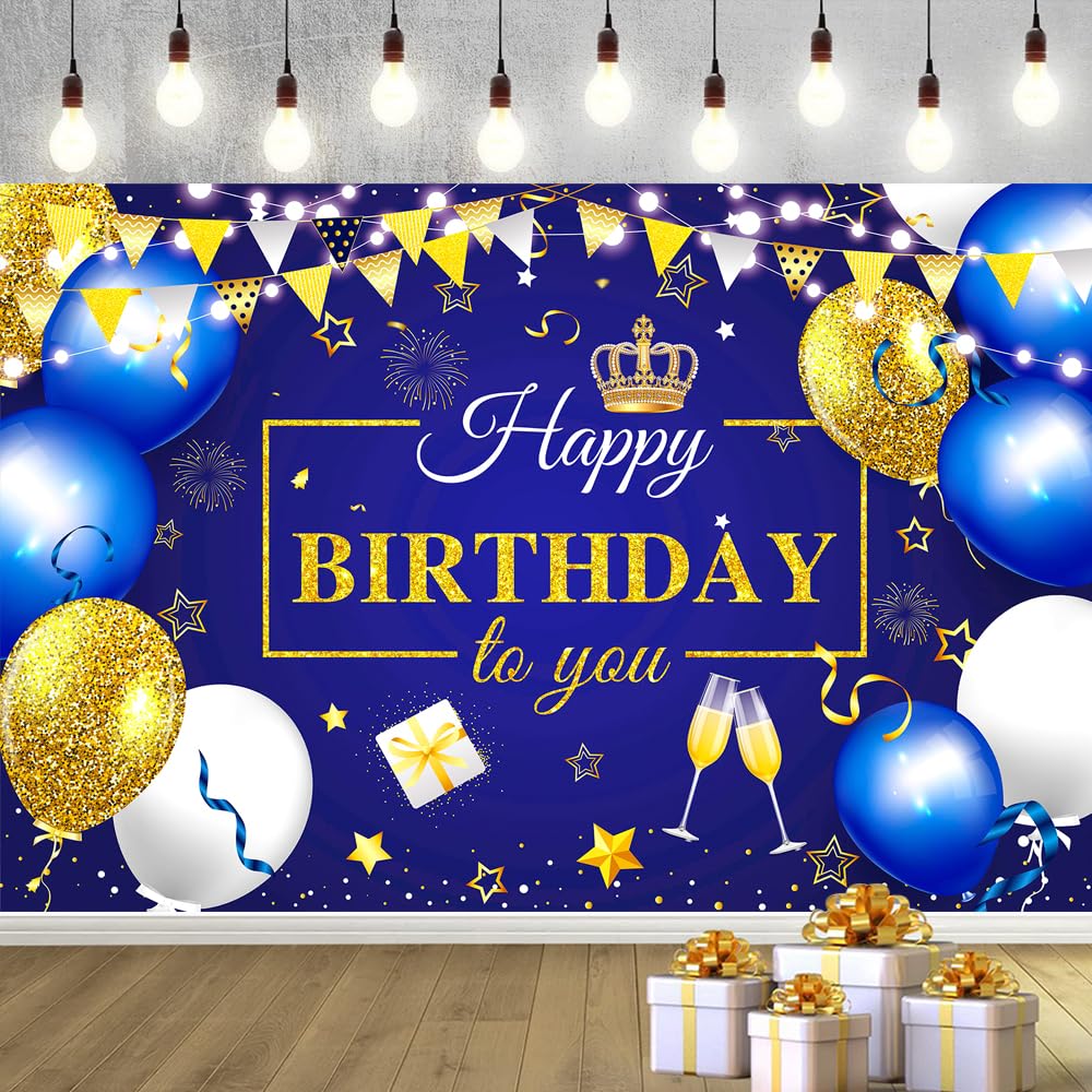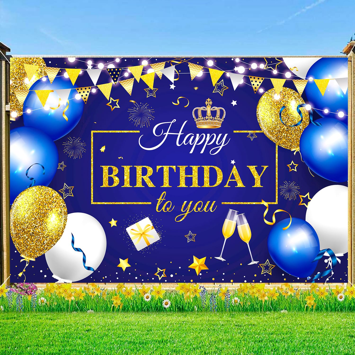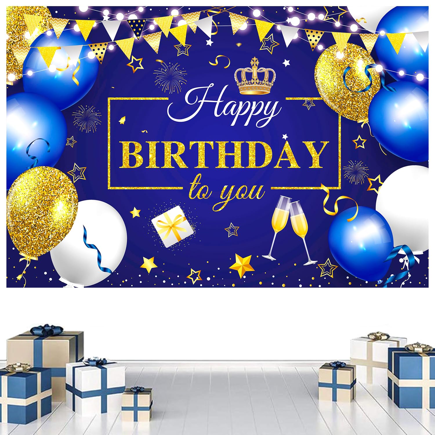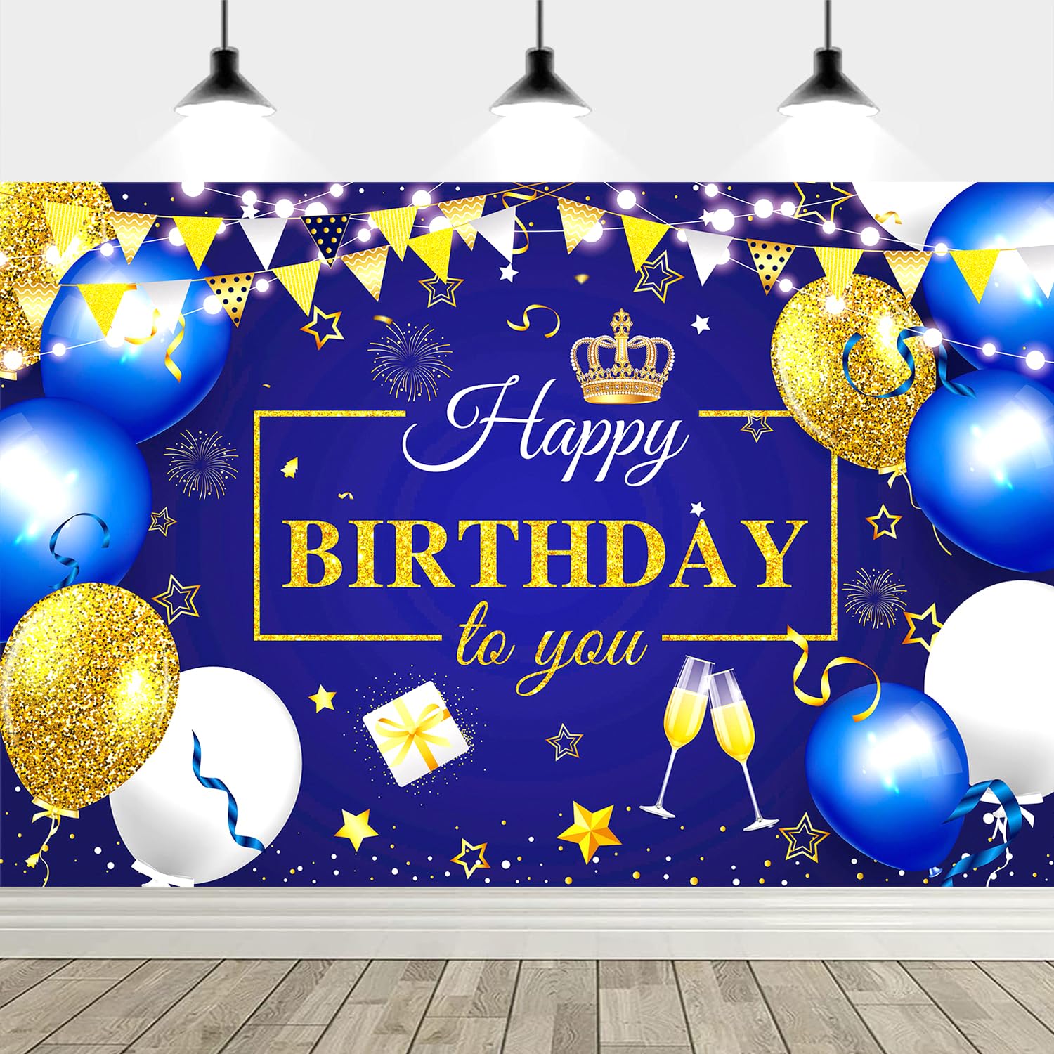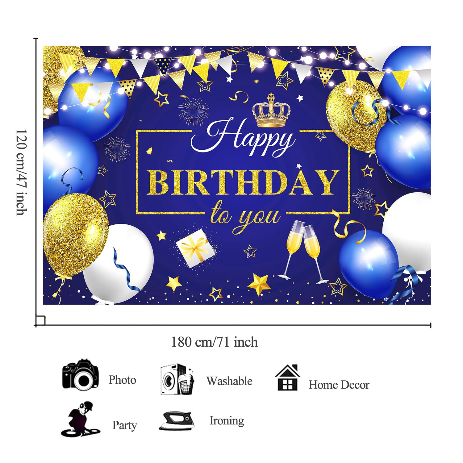 The royal navy blue gold happy birthday party backdrops for photo booth can be used as party decoration supplies (birthday, baby shower, etc. ). it can be used as Baby Shower Tablecloth, Wallpaper, Curtain, Happy Birthday backdrop for photo studio.