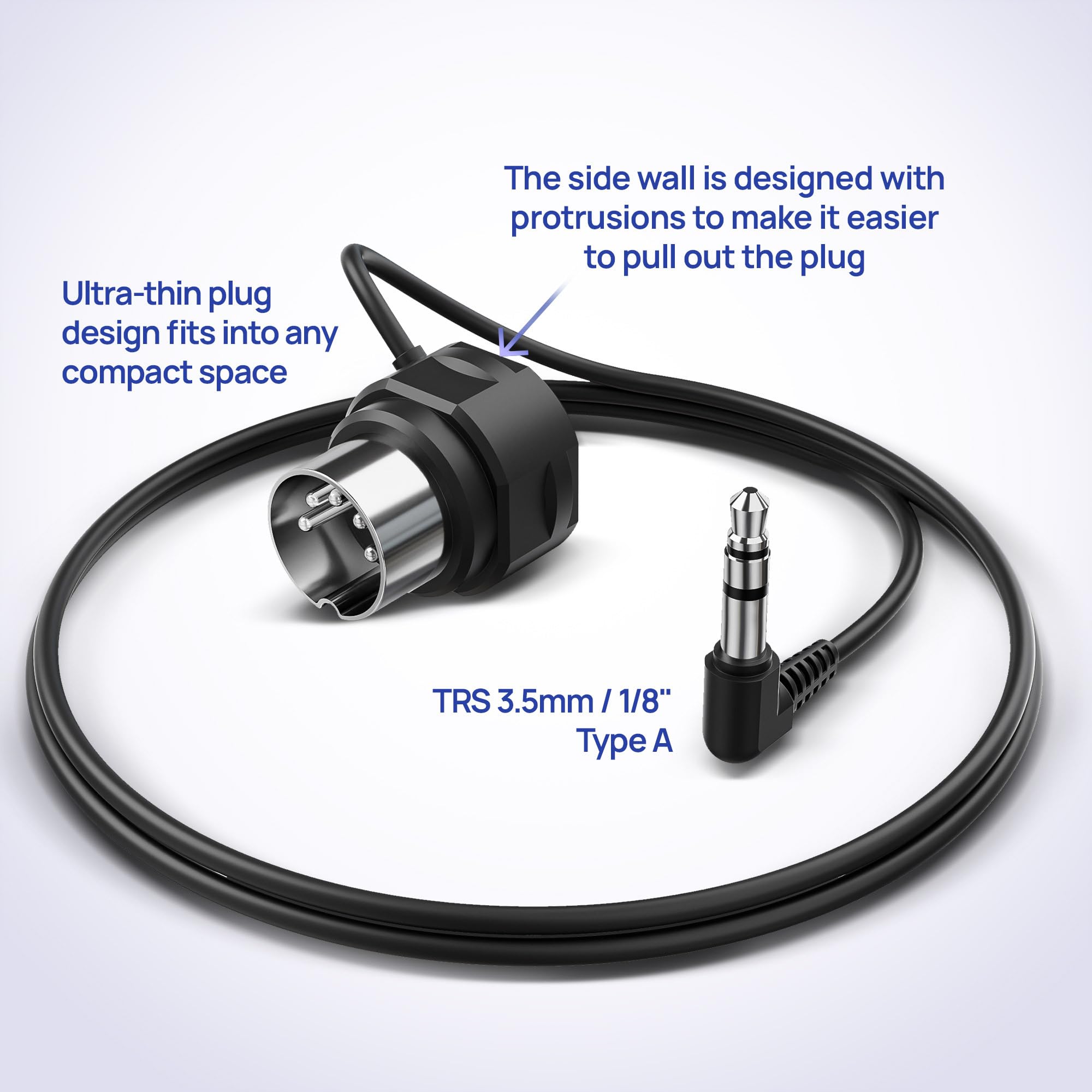 [Convenient Design] Enjoy high-speed MIDI data transmission without latency thanks to the ultra-thin, high-performance plug design. The right angled plugs fit seamlessly into tight spaces and is easy to connect with convenient protrusions