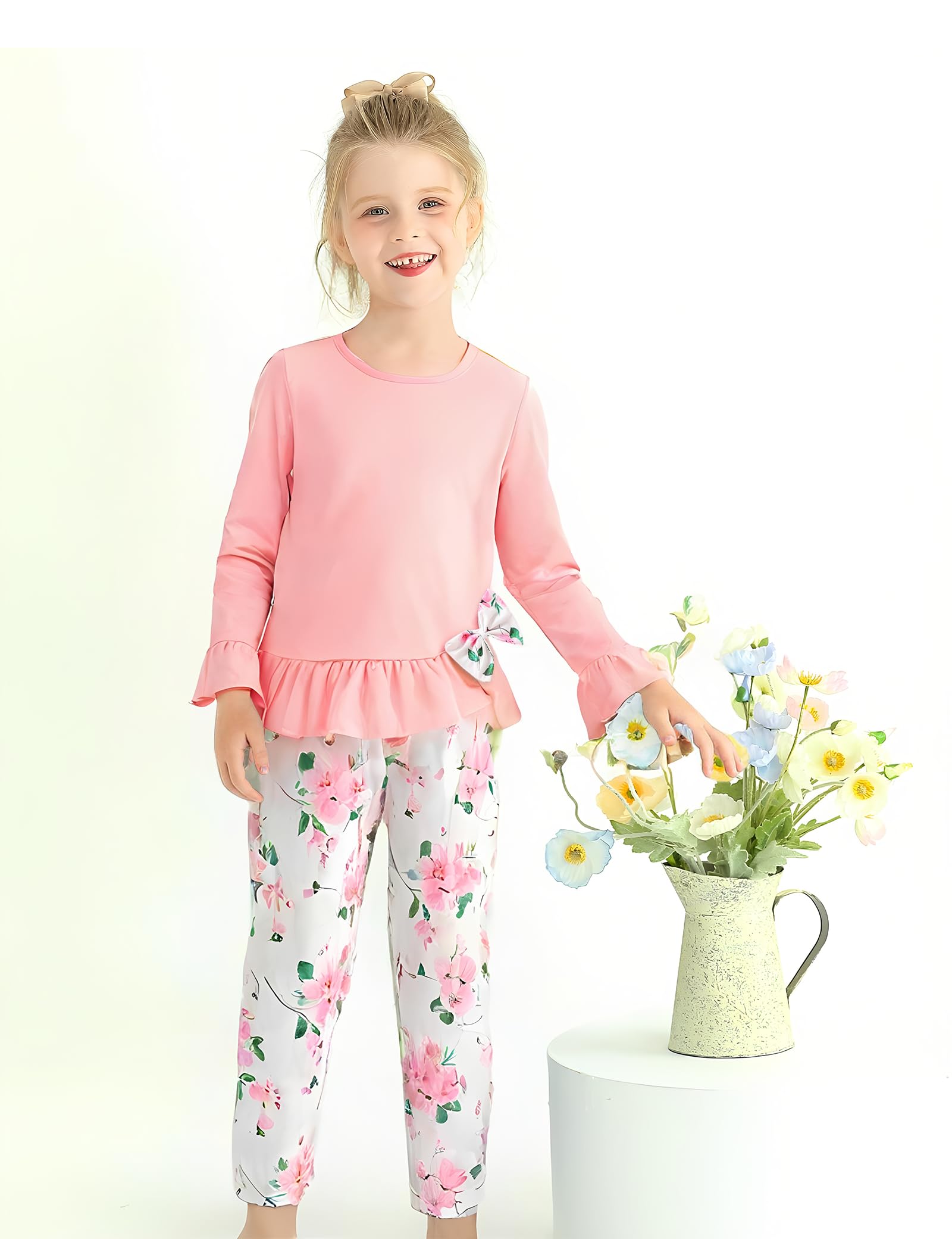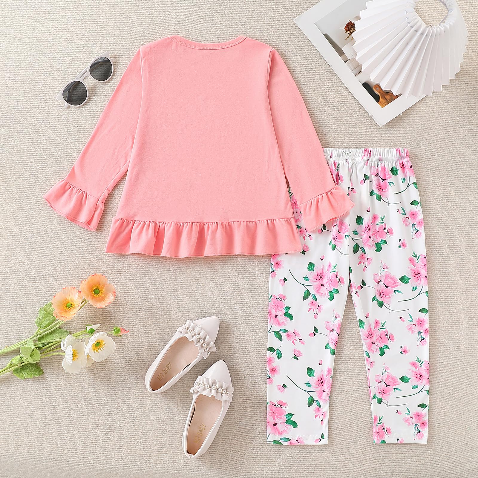 【Comfortable Fabric】Made from soft, breathable cotton blend, this girls' clothing set ensures all-day comfort—perfect for school, travel, or everyday wear.