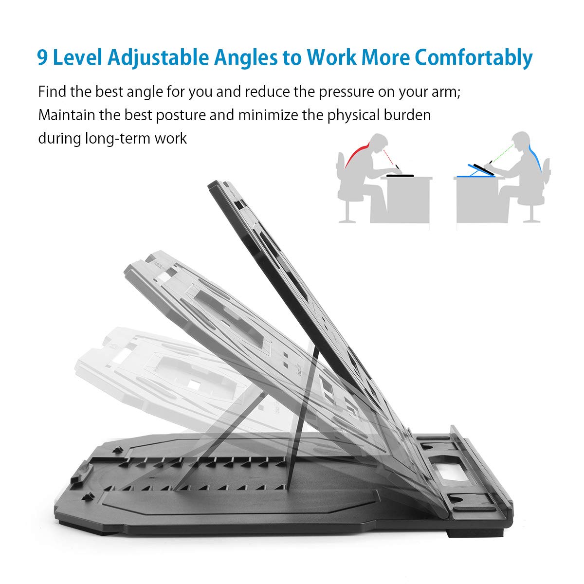 Angle Adjustment: Choose the most suitable angle of this drawing tablet stand for you. Look straight ahead, scientific & comfortable posture, reduce wrist fatigue, support a long time creation work.