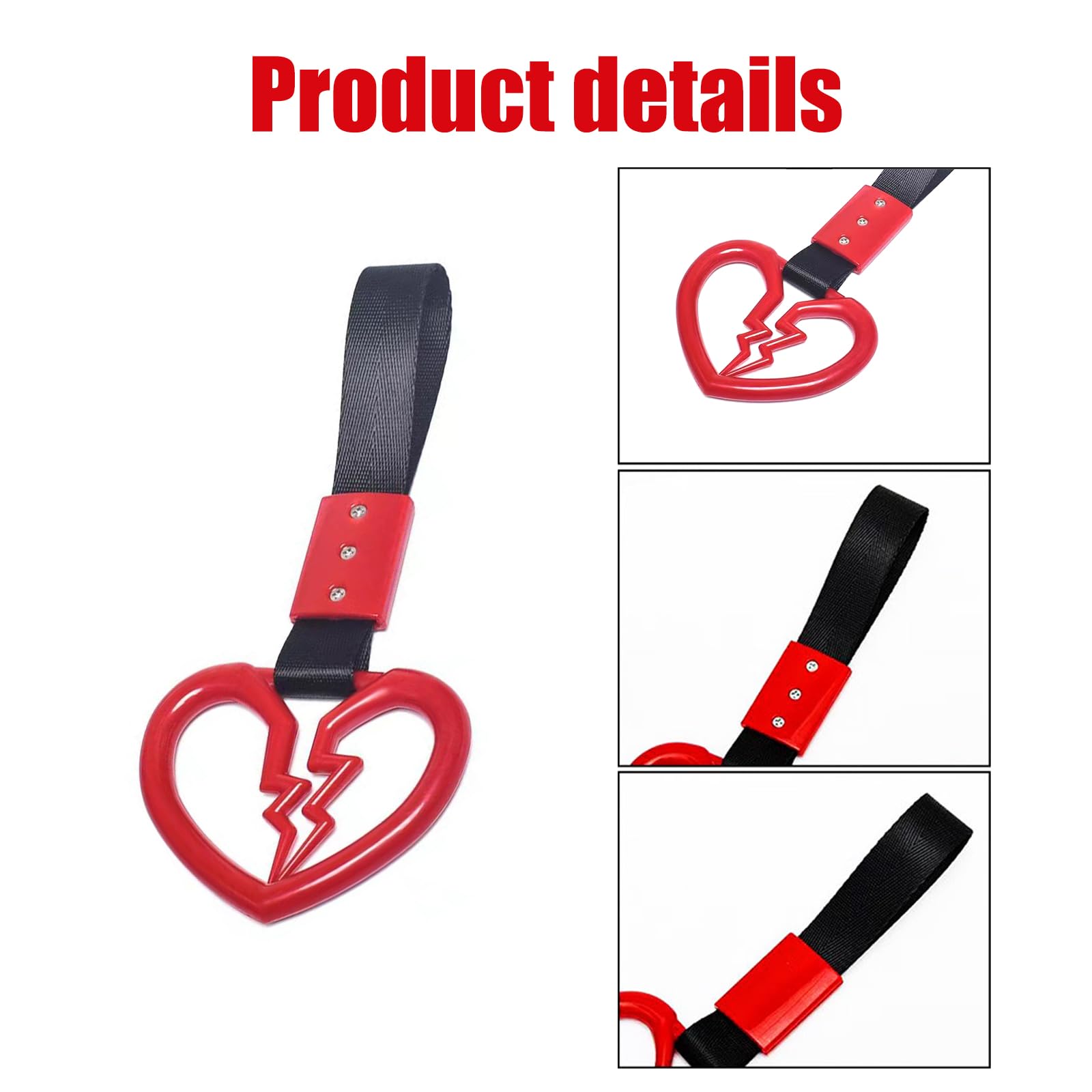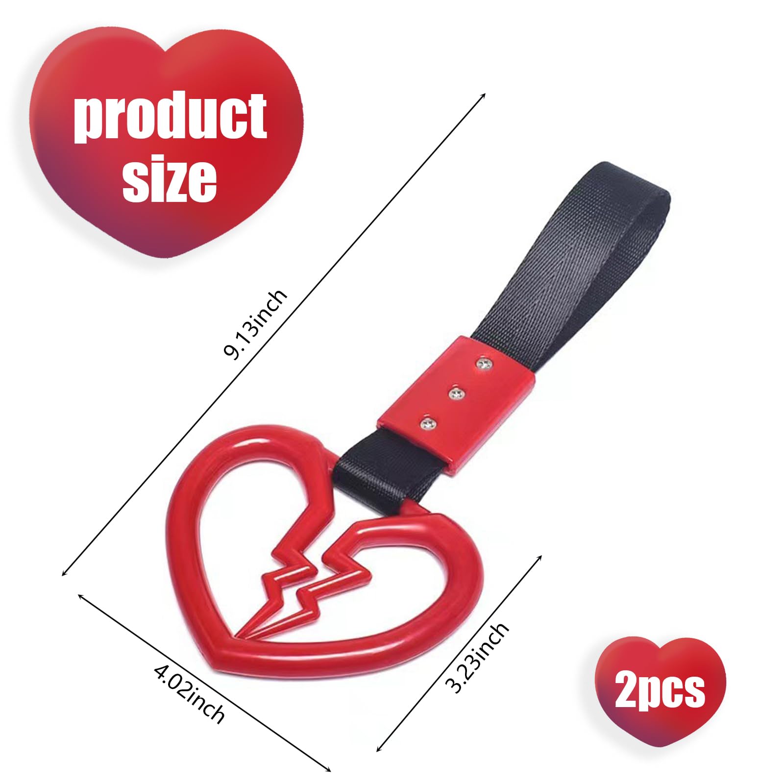 Yumfugu 2 PCS Car Warning Hanging Ring, ABS Nylon with Broken Heart Shape Rear Bumper Hand Pull Ring, Multi-purpose Personalized Decorative Accessory, Compatible with Most Car Models (Red & Black)