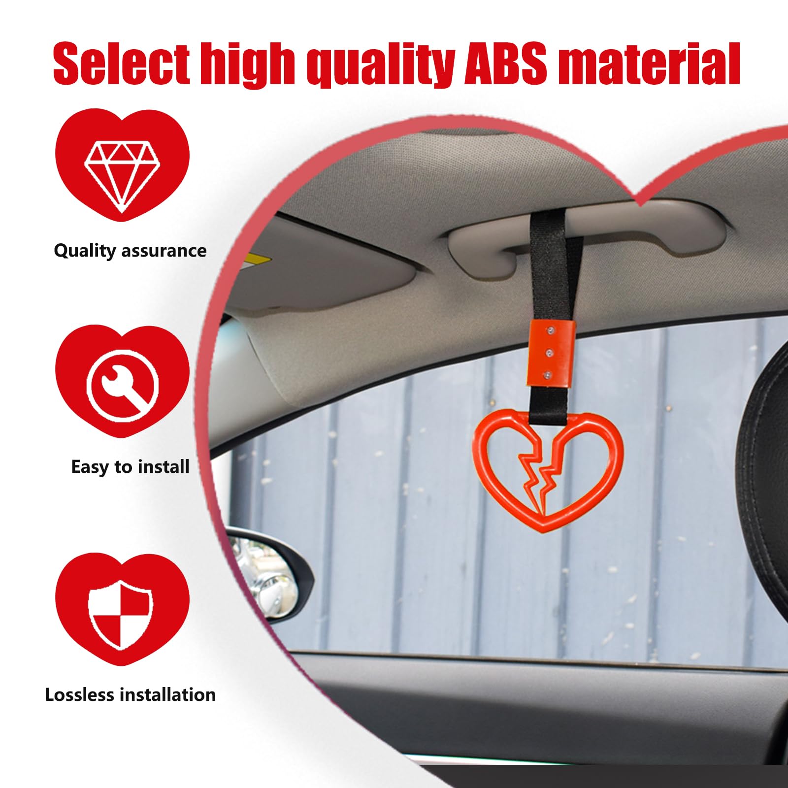 Broken Heart Shape: This car warning hanging ring is designed in the shape of a broken heart, which means paying attention to and caring for the safety of others. This special shape can attract people's attention and remind them to pay attention to driving safety.