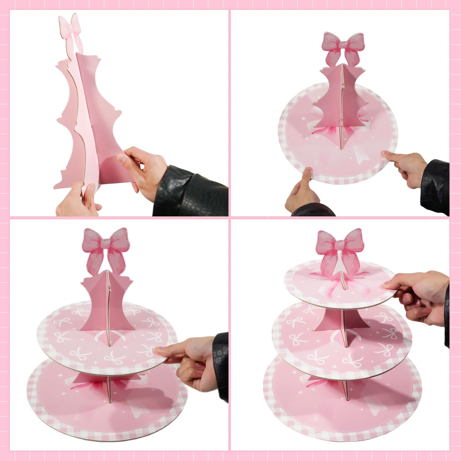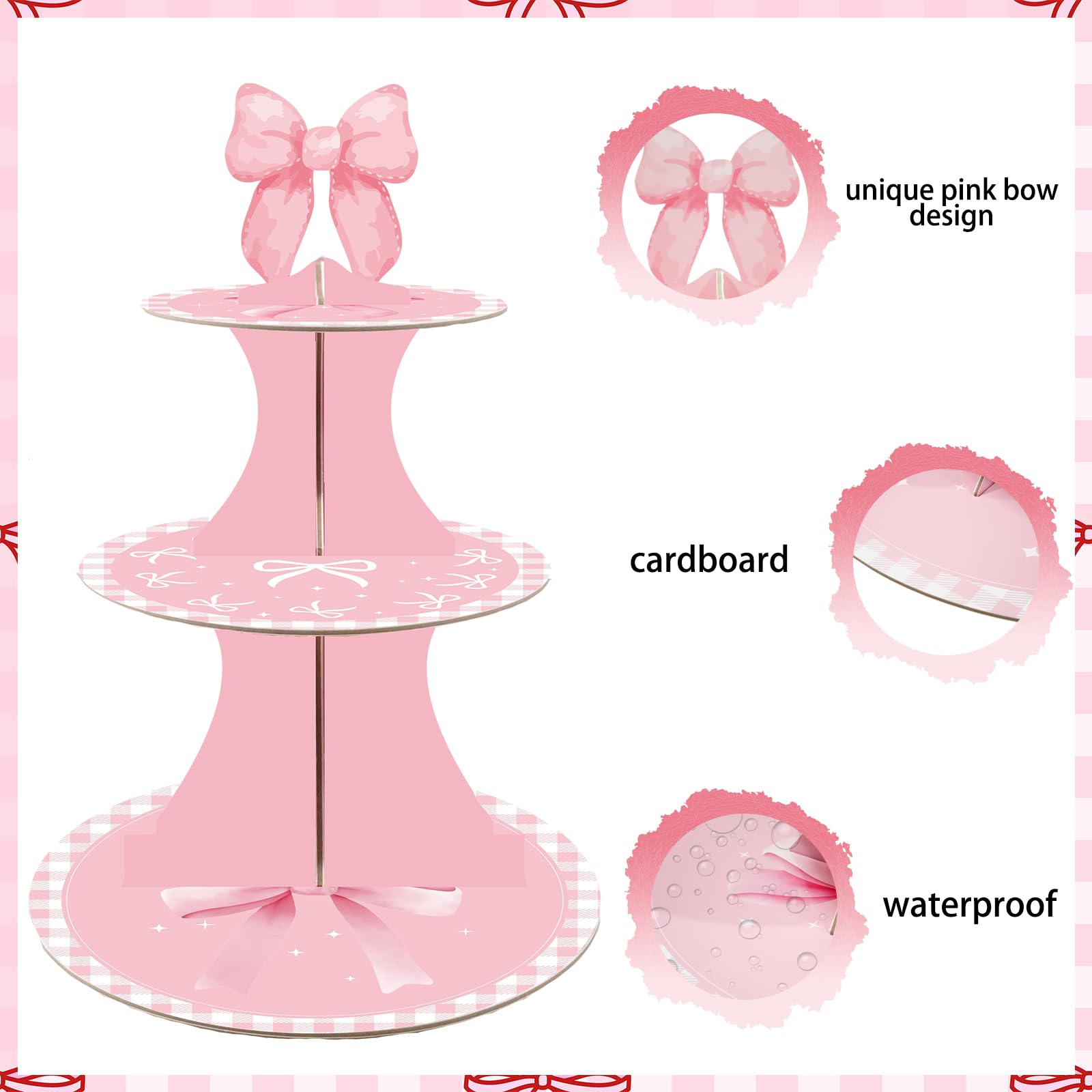 4.Widely Use: Our pink cupcake stand is suitable for various events, such as coquette birthday decorations, bow theme party, bachelorette party, weddings, birthday party and more, leaving sweet memories for your parties
