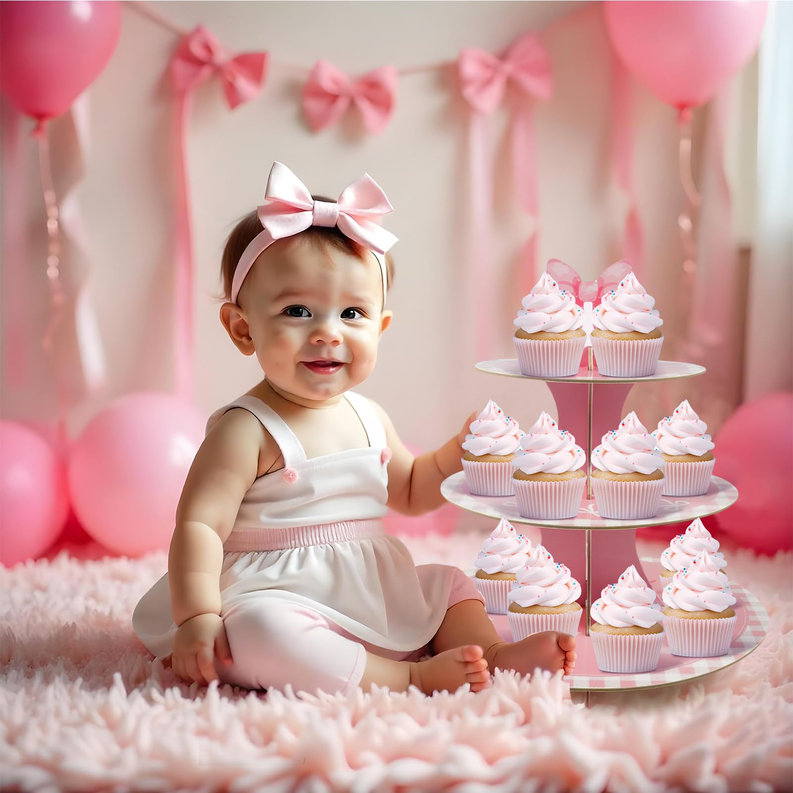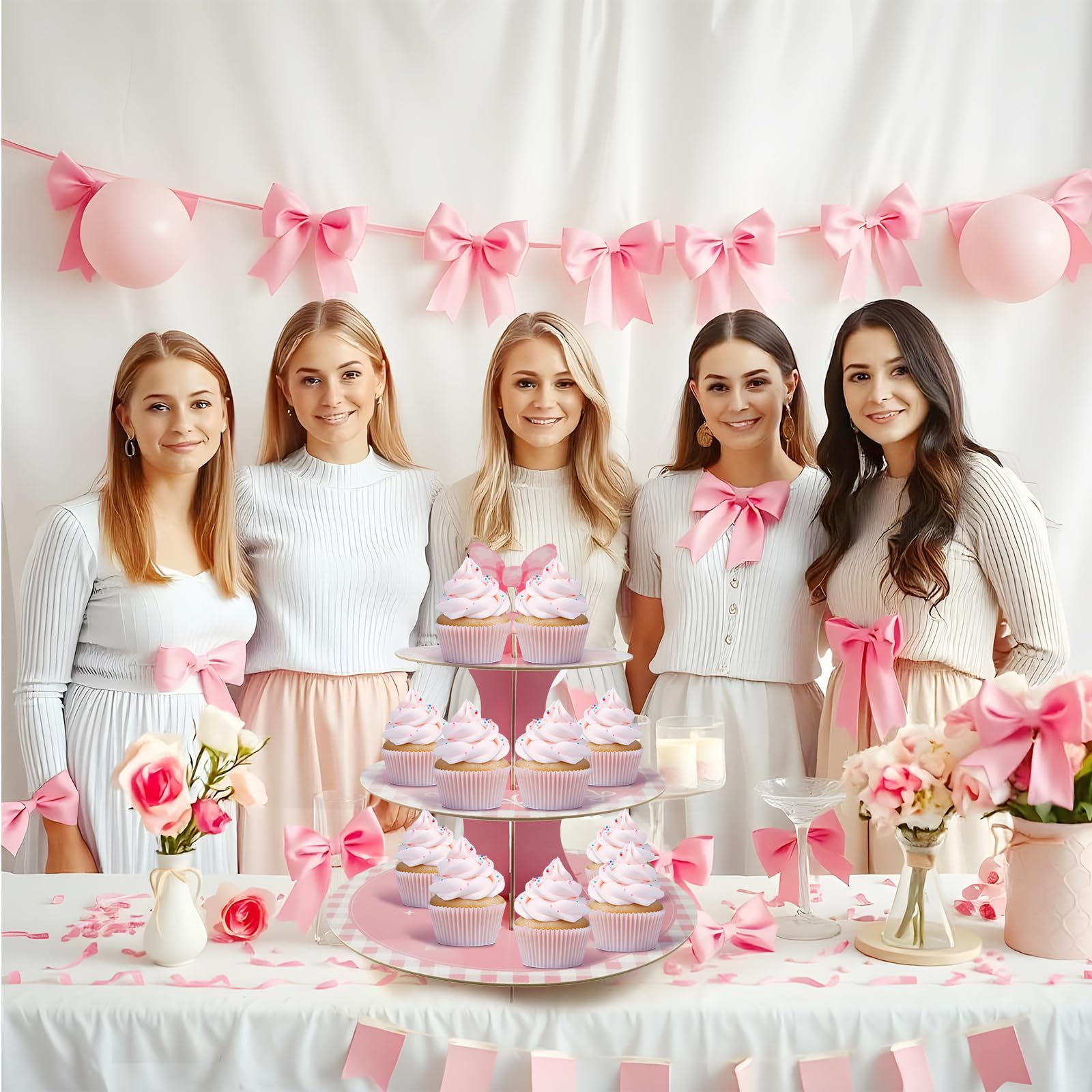 5.Ideal Coquette Birthday Decoration: This pink bow cupcake hold can hold enough cupcake, cookies, snacks, desserts, candies, with ample and sturdy height between tiers, it is bow theme birthday party centerpieces for table decorative spotlight