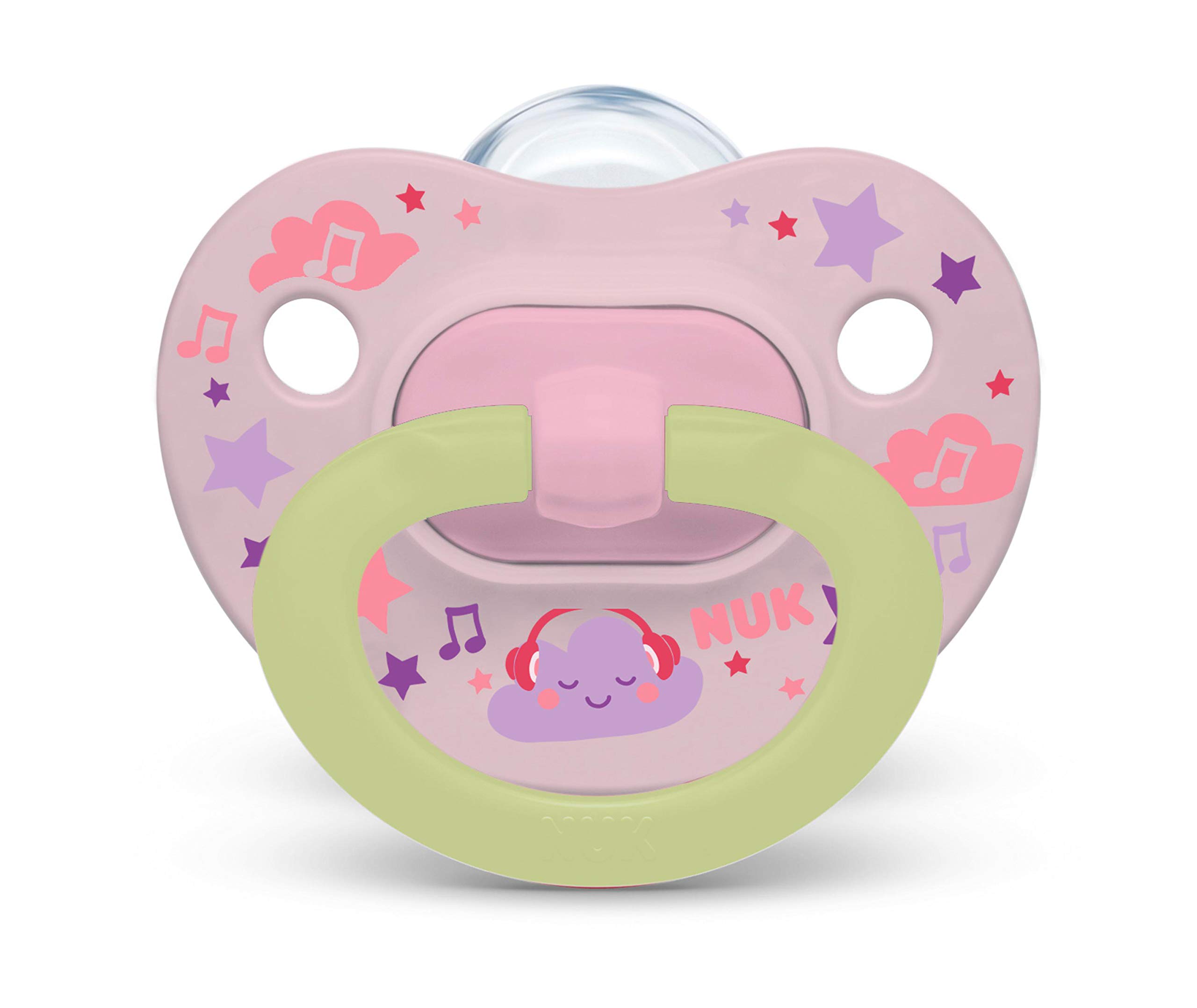 One pacifier glows in the dark making it easy for parents and babies to locate at night