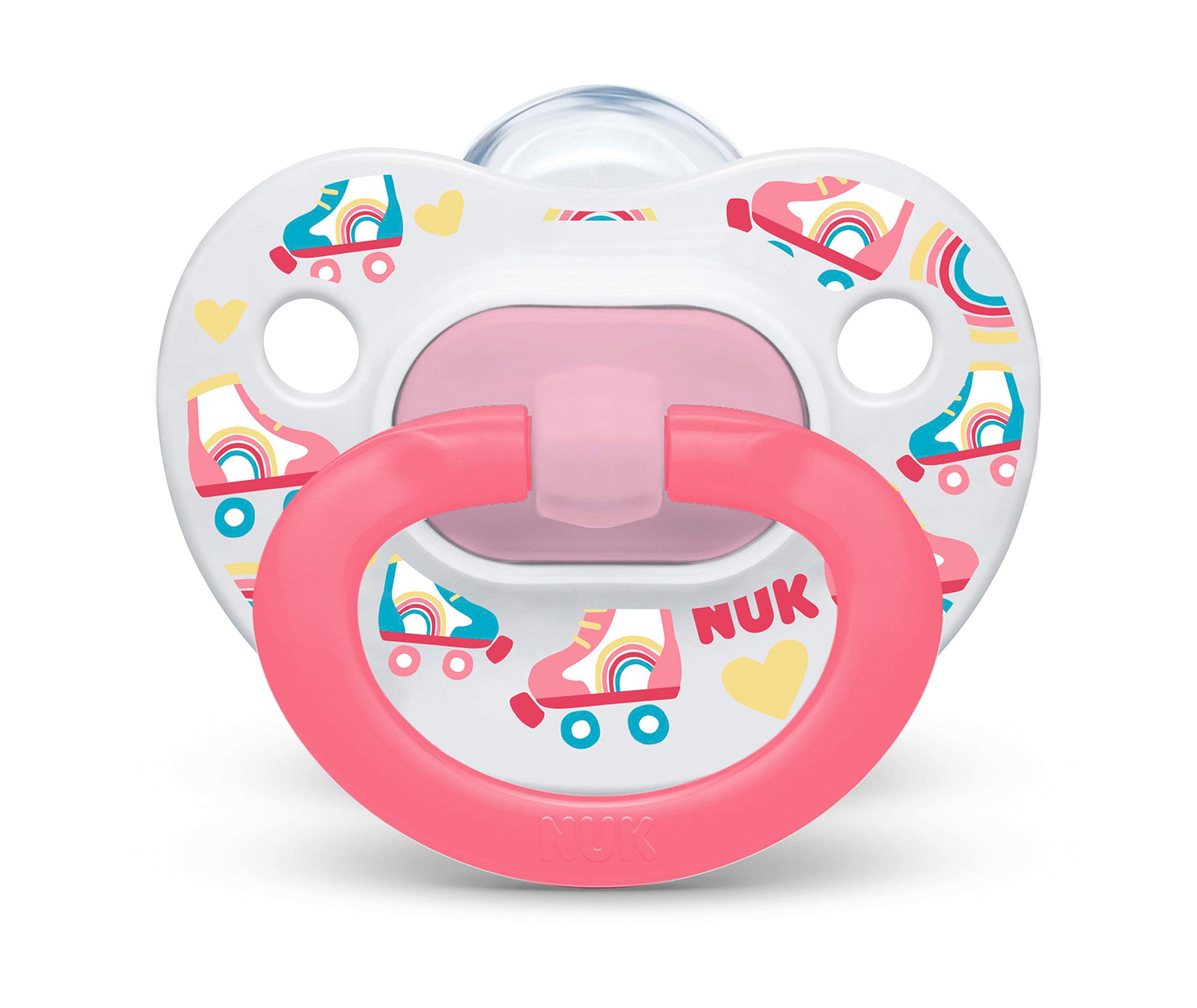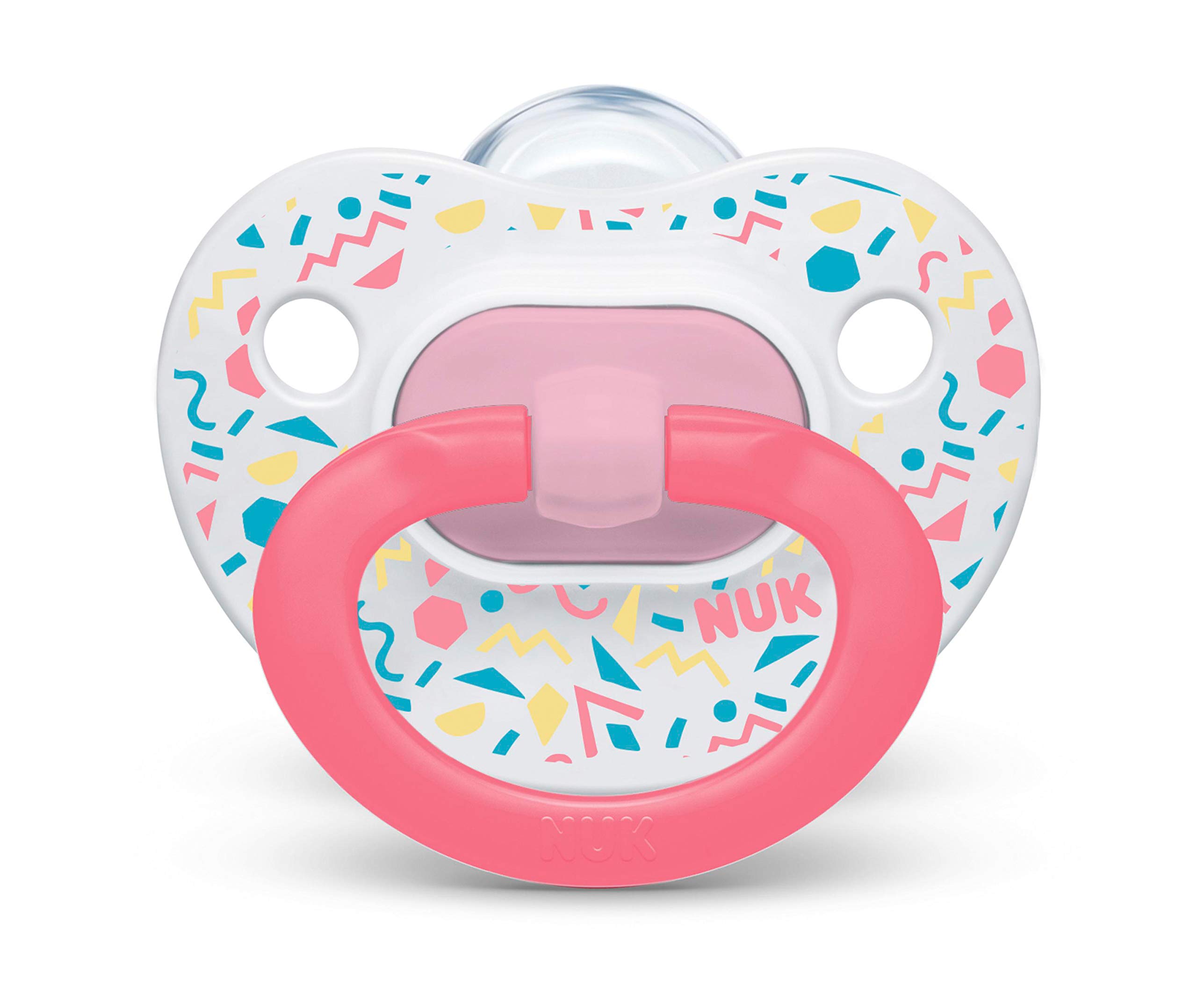 Having a difficult time finding the right pacifier for your baby? NUK Orthodontic Pacifiers are accepted by 95% of babies* and feature a unique, improved asymmetrical nipple that naturally fits baby’s palate to allow more room for a natural sucking motion, reduces pressure on teeth and jaws, and helps prevent teeth misalignment. Invented over 60 years ago by pediatric dentists and doctors, the NUK orthodontic pacifier is modeled after the natural shape of mom’s nipple while breastfeeding. This makes for an easy transition from breast to pacifier and back. The heart-shaped shield fits perfectly under baby’s nose for easier breathing and prevents irritation. All pacifiers are BPA free and dishwasher safe (top rack only). (*Based on Market Research, 2017, tested with 307 pacifier users)