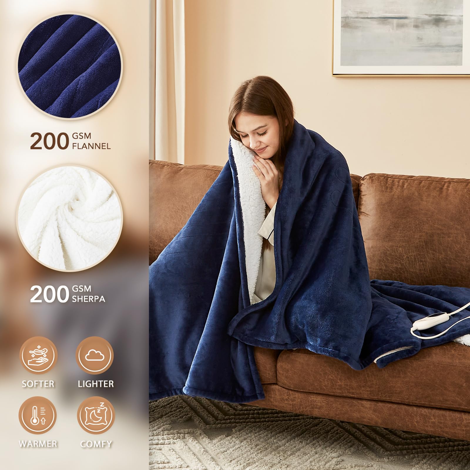 PREMIUM MATERIAL: 200gsm flannel + 200gsm sherpa.The fabric is very soft,thicker than normal blankets,and warmer than normal blankets even without electricity.The fabric is durable and does not shed.The diameter of the heating wire is 2.2 mm,and the existence of the heating wire is hardly felt during use,which is more comfortable.