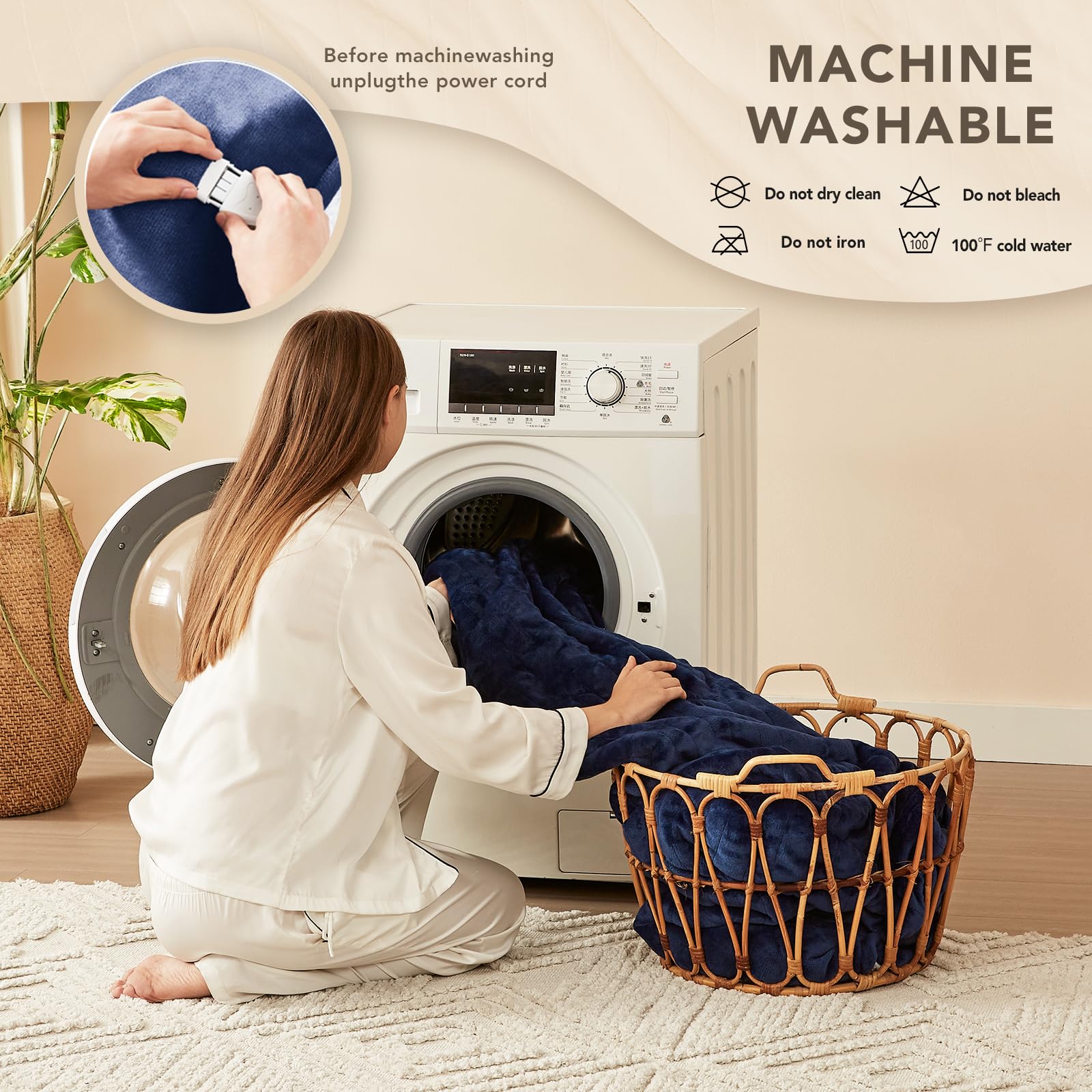 MACHINE WASHABLE: Homemate Heated blankets can be machine washed, but please read the instructions carefully before cleaning to avoid improper operation, which can avoid safety problems and prolong the service life of electric blankets.