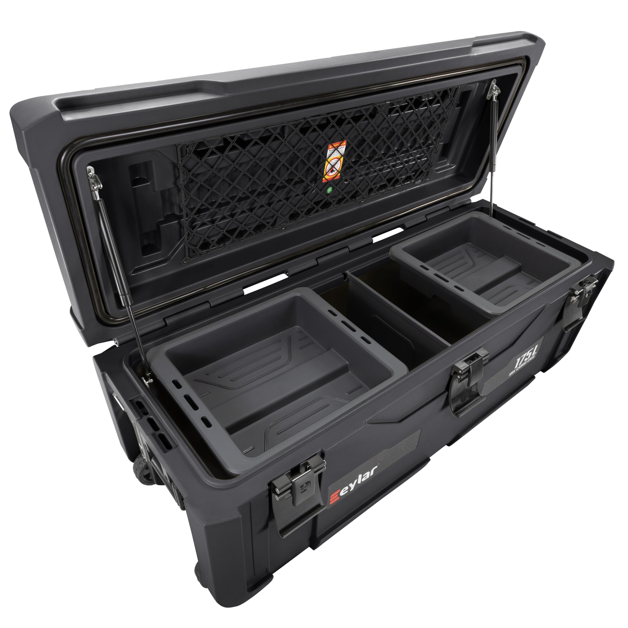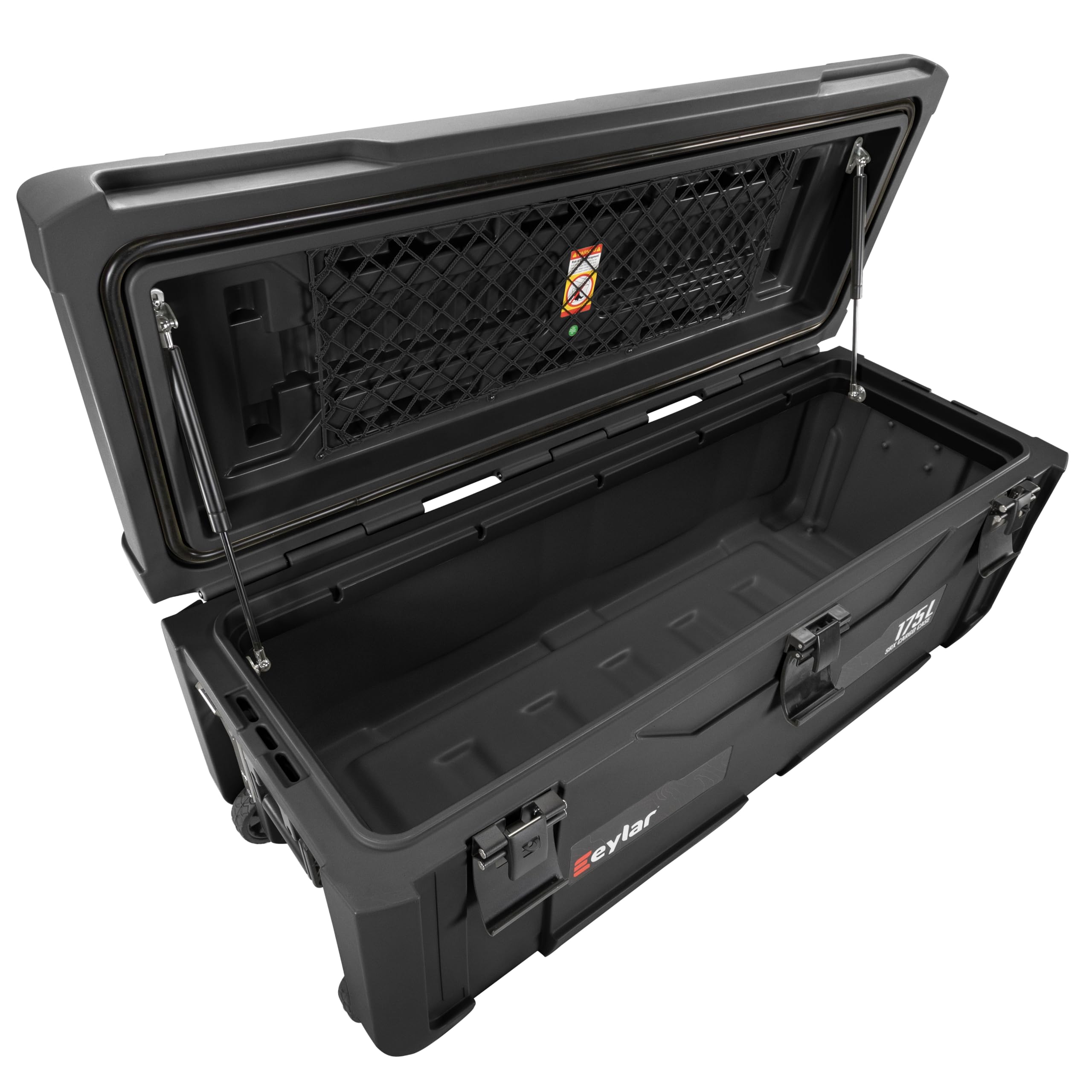 The Eylar SRX-175 Extra Large Offroad Transport Cargo Case is built for those who demand maximum durability and versatility in their outdoor adventures. With an expansive 175-liter capacity, this rugged case is designed to protect your gear in the harshest conditions, whether you’re tackling rough trails, setting up camp in the wild, or transporting essentials on an extended road trip. Its reinforced construction and lockable latches keep your equipment secure, while the rubber gasket lining ensures waterproof protection to shield your contents from the elements. The gas strut lid provides effortless opening and stays propped up for easy access, making packing and unpacking a breeze. Perfect for multi-purpose storage, the SRX-175 is ideal not only for tools and camping gear but also for food and dry goods storage. The included internal tray and divider help keep everything organized, from cookware and provisions to essential supplies. The built-in drain system allows for quick and easy cleaning, making it perfect for use as an impromptu cooler when filled with ice. Plus, dual bottle openers offer added convenience for unwinding after a long day of adventure. For enhanced safety and organization, the SRX-175 includes optional reflective stickers, improving visibility in low-light conditions. Its stackable design allows for efficient storage on a vehicle roof rack, in a truck bed, or in a garage—ensuring stability without the risk of cases shifting. Whether you're heading off the beaten path, gearing up for a weekend tailgate, or just in need of a reliable, all-weather transport case, the Eylar SRX-175 Extra Large Offroad Transport Cargo Case is built to go wherever the journey takes you.