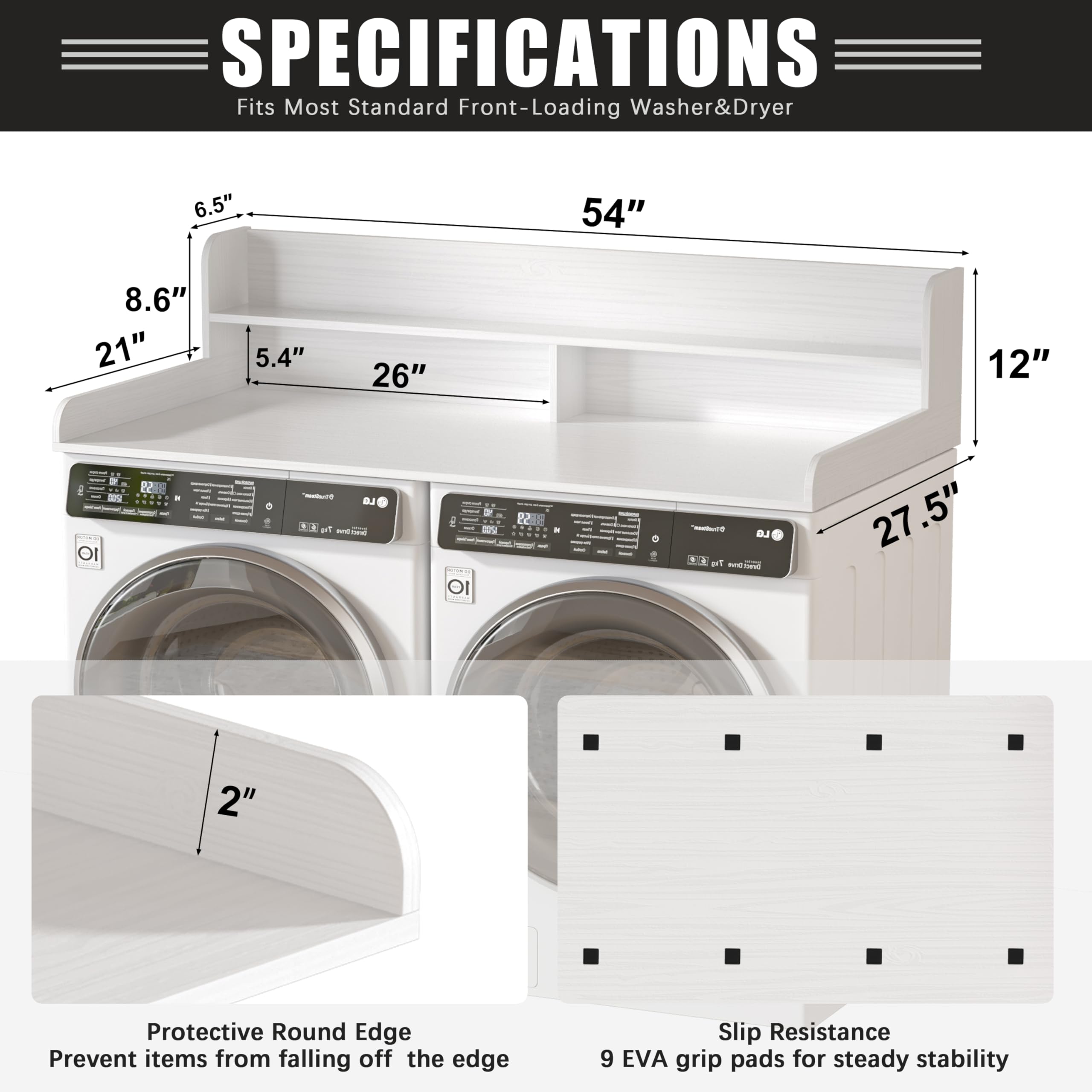 【Easy to Install】The products have been strictly tested before leaving the factory.The detailed installation guide for the laundry countertop included with the product explains the steps in clear steps. Even first-time users can easily complete each step by following the guide to ensure a smooth and error-free installation process. The product is equipped with 12 rubber stickers with anti-slip function to ensure that the washer dryer countertop is stably fixed on the laundry countertop.
