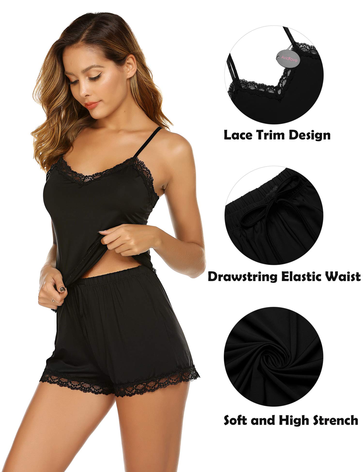 Cami pajama set women shorts featuring a plunging v neck, decent lace trim and adjustable shoulder straps, simple and stylish, shows off your body curves in nice coverage way