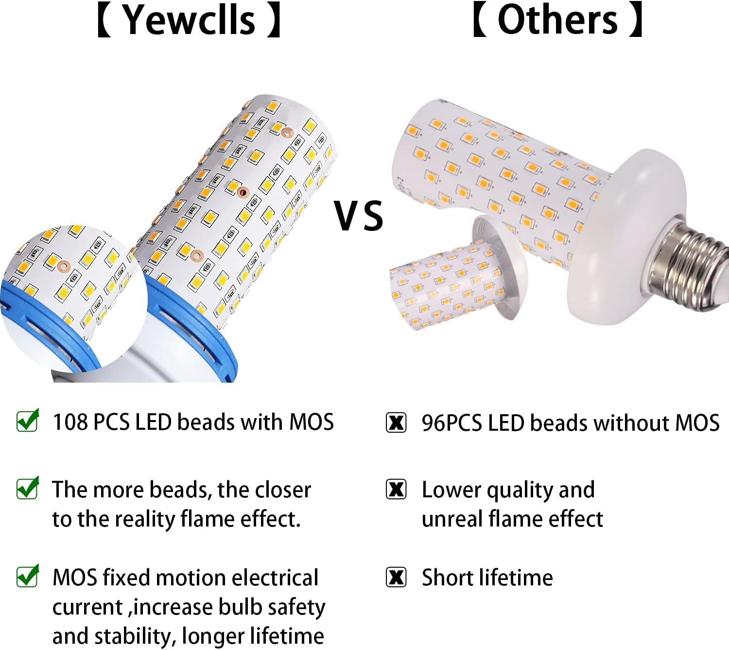 REALISTIC FLICKERING DESIGN: Artificial vivid flame, flickering flame bulb, no glare light, warm fire color decorate your space, giving you a quiet, romantic and relaxing moment. It is the indispensable decorative light for atmosphere lighting, holiday gifts and family holidays, gatherings.