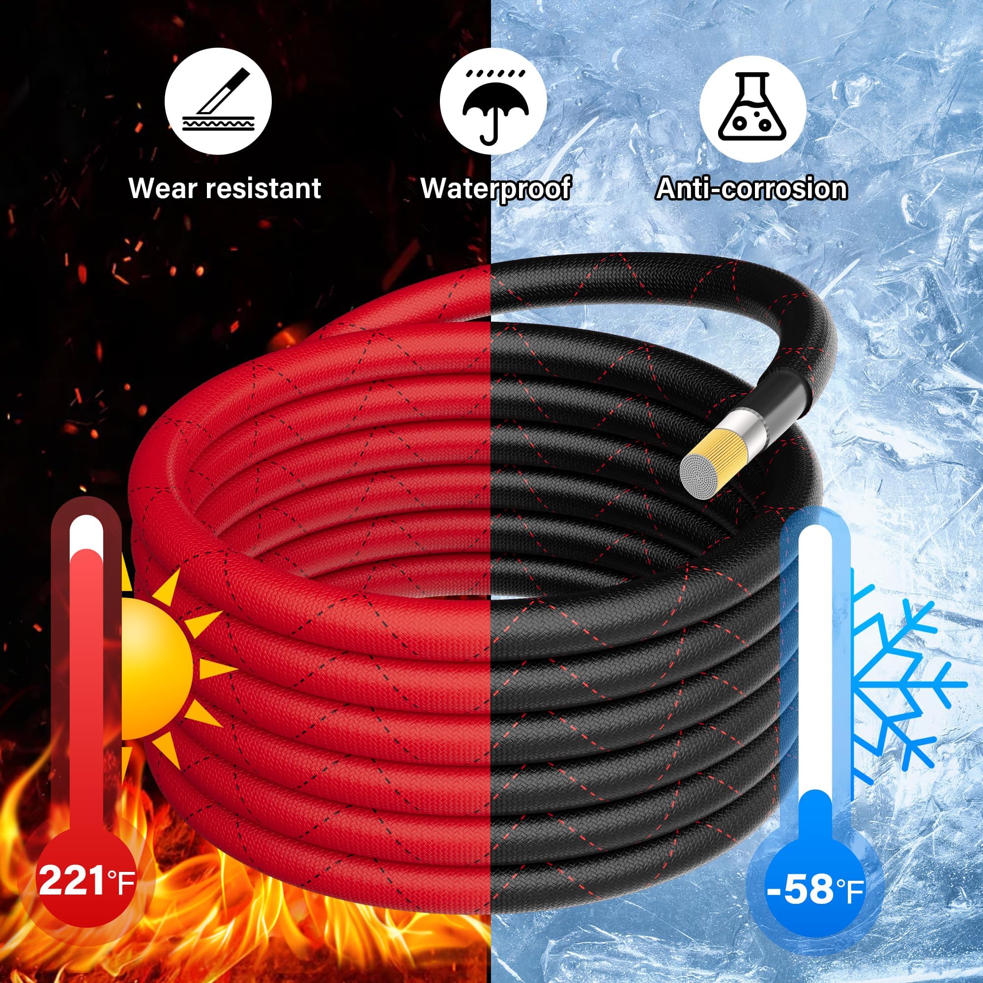 Flexible and Convenient Design: The cable features high-quality soft PVC and a braided outer jacket design, with a high strand count copper-clad aluminum wire (412/0.254mm) that provides excellent flexibility and easy installation, making it perfect for wiring in tight or complex spaces. The black and red wires, with either more black or more red, are easy to distinguish and wire
